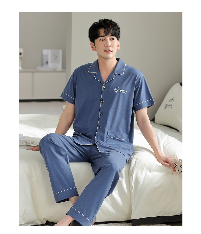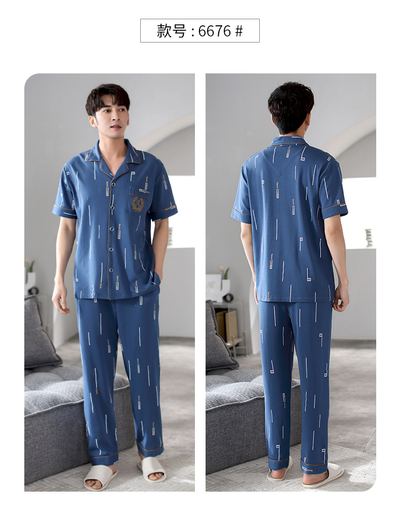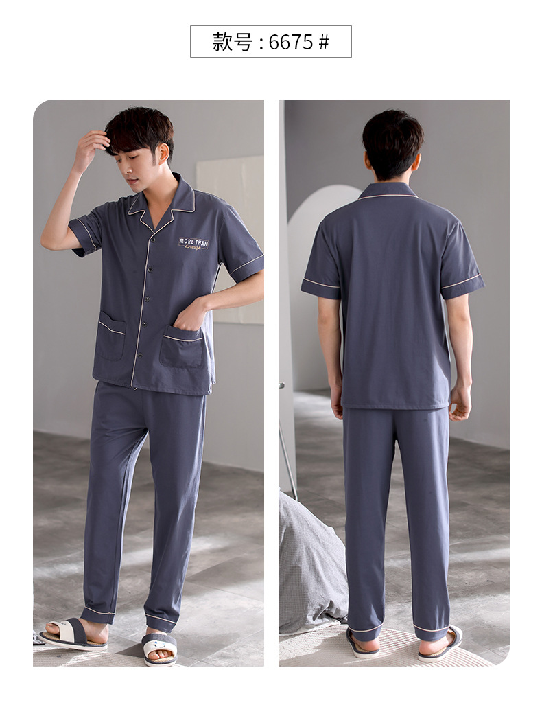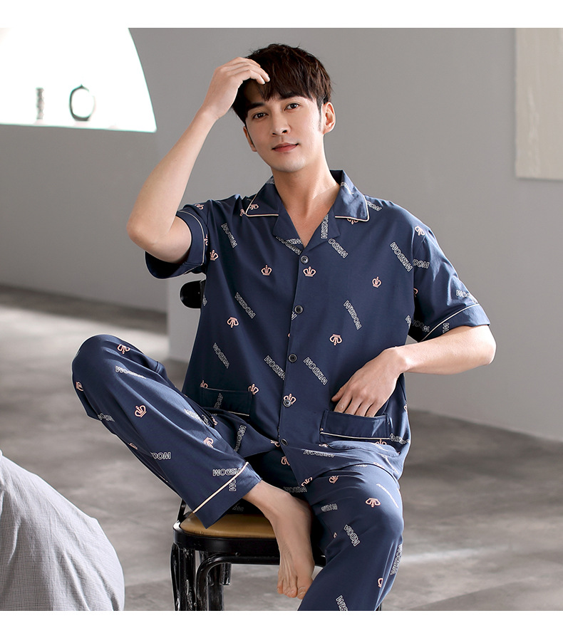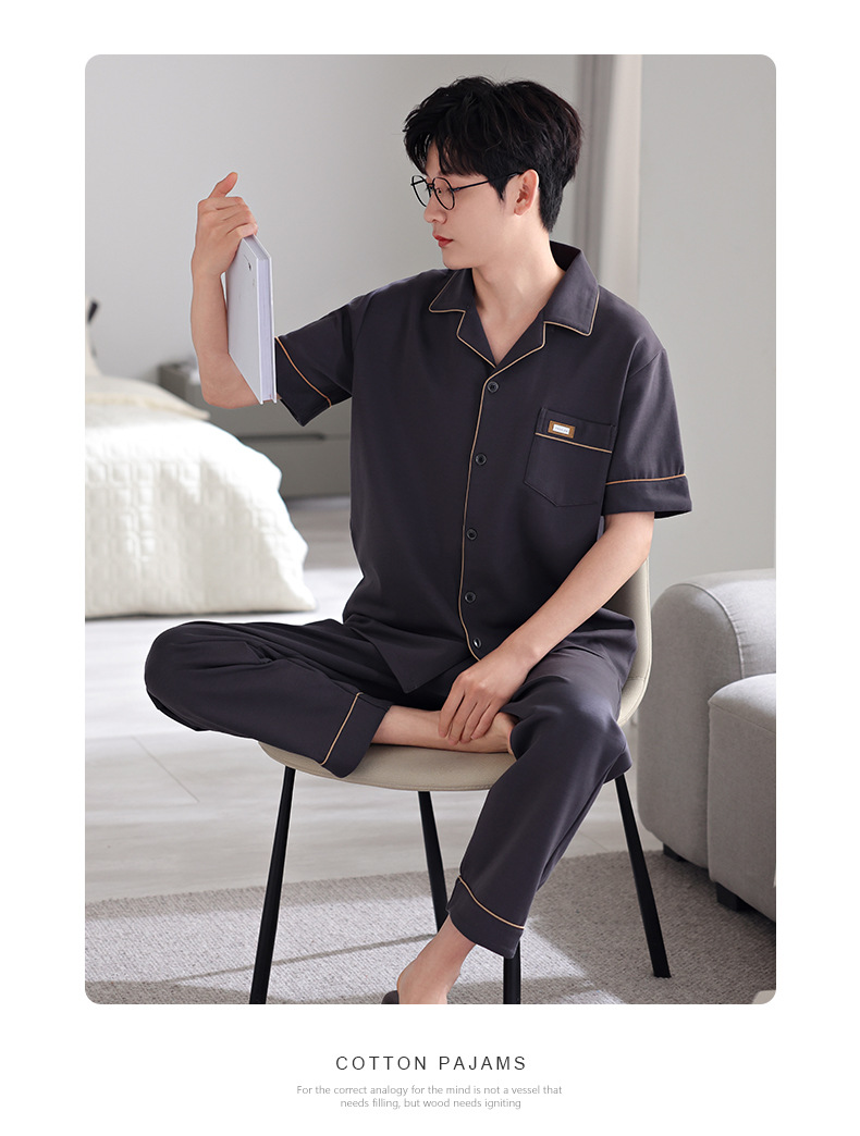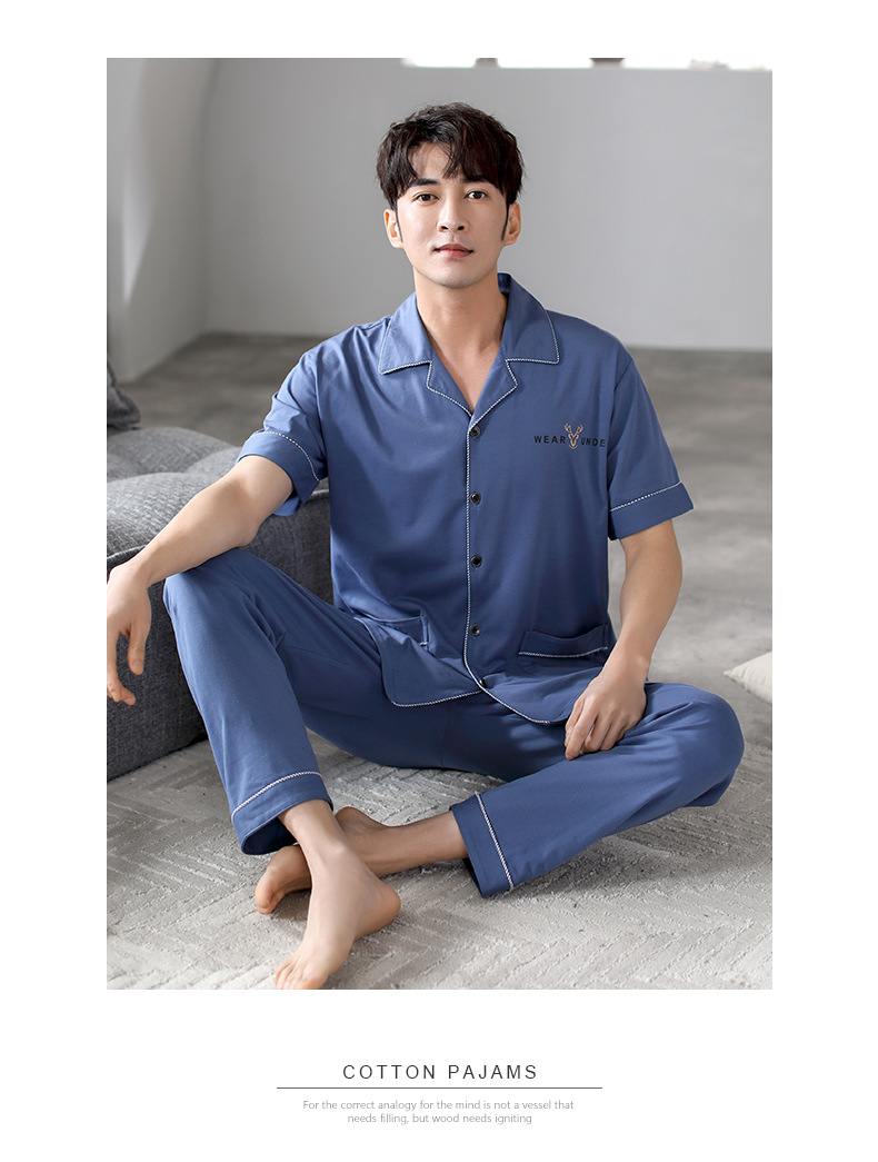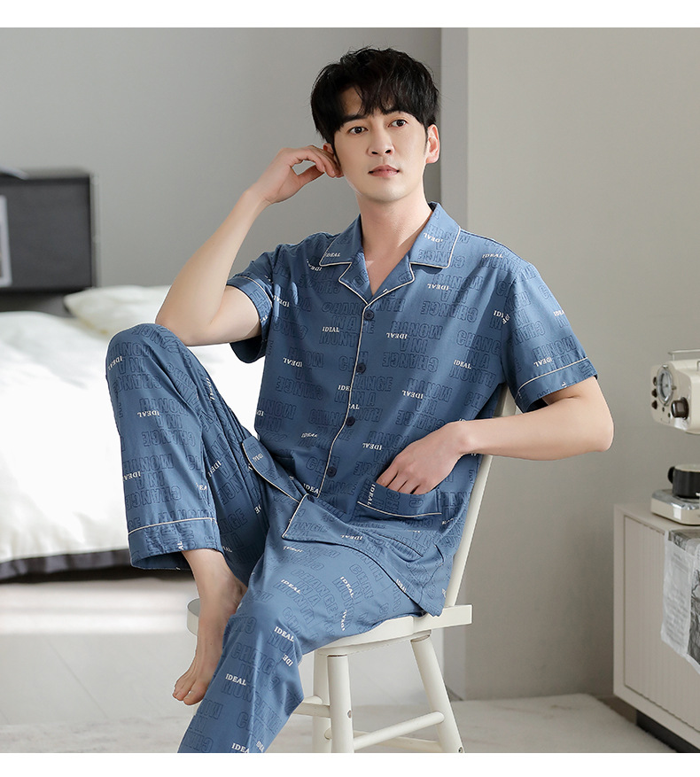 夏の新商品の男性パジャマは綿のカーディガンの半袖のズボンのゆったりした大きいサイズのカジュアルな家庭服を詰めて外に着ることができます。