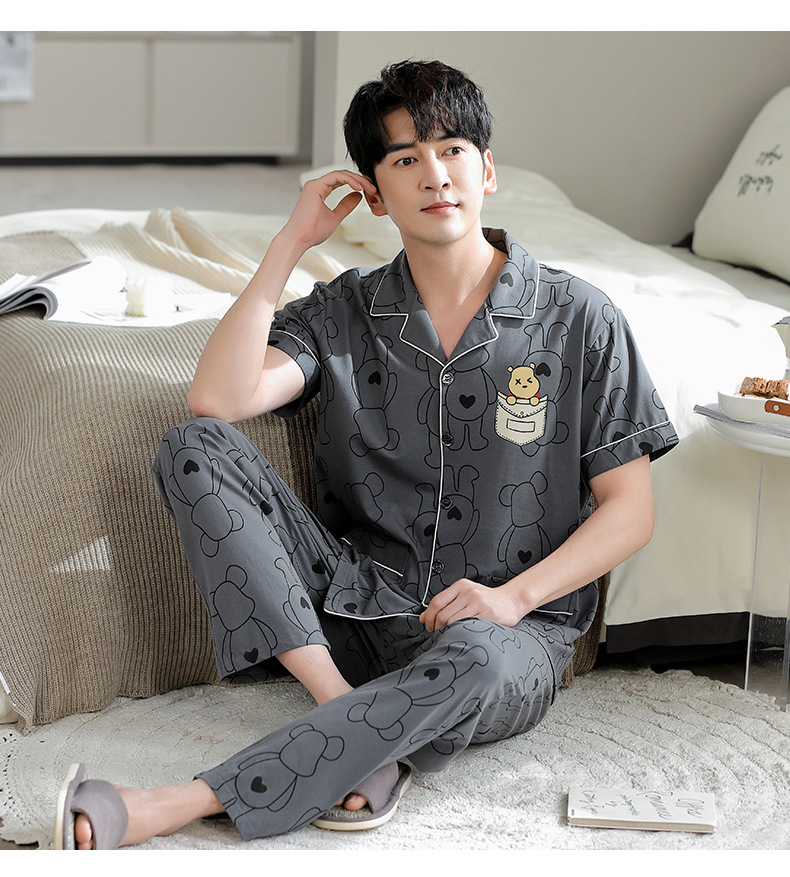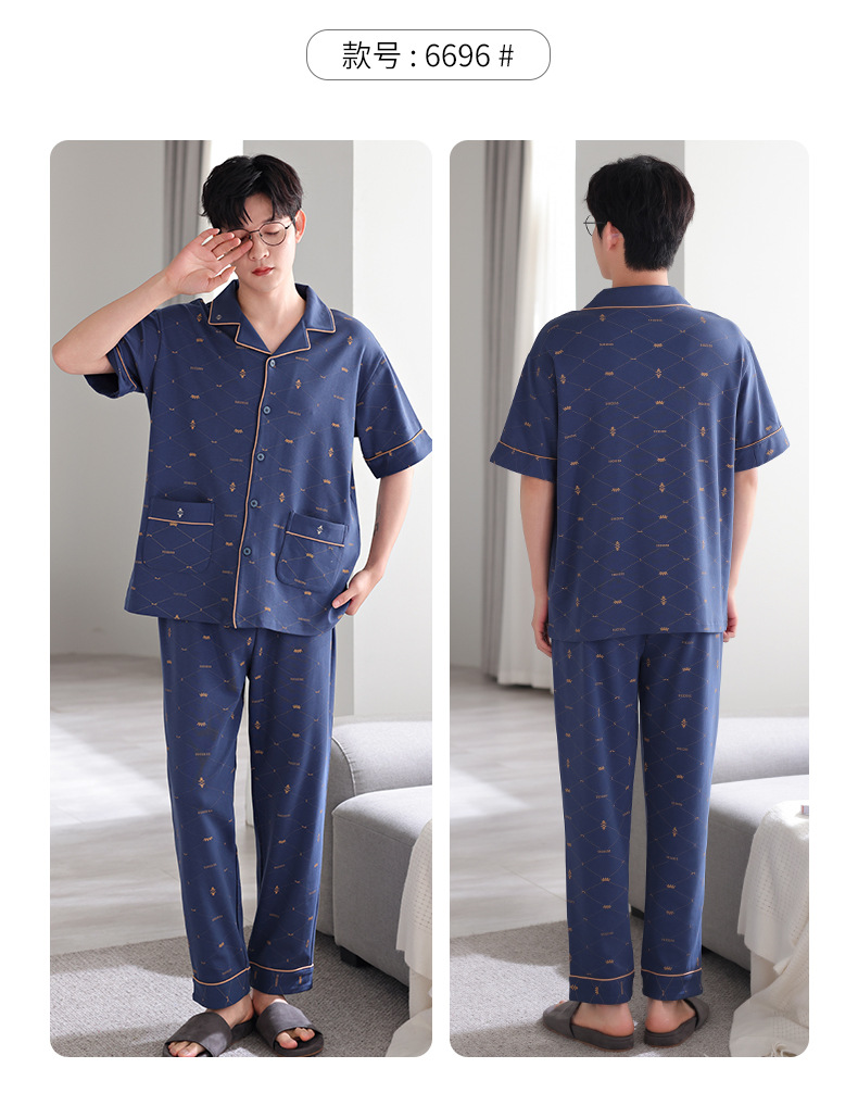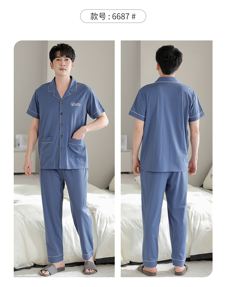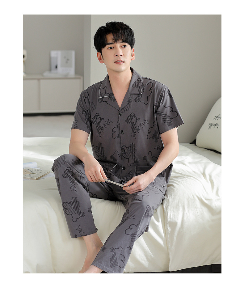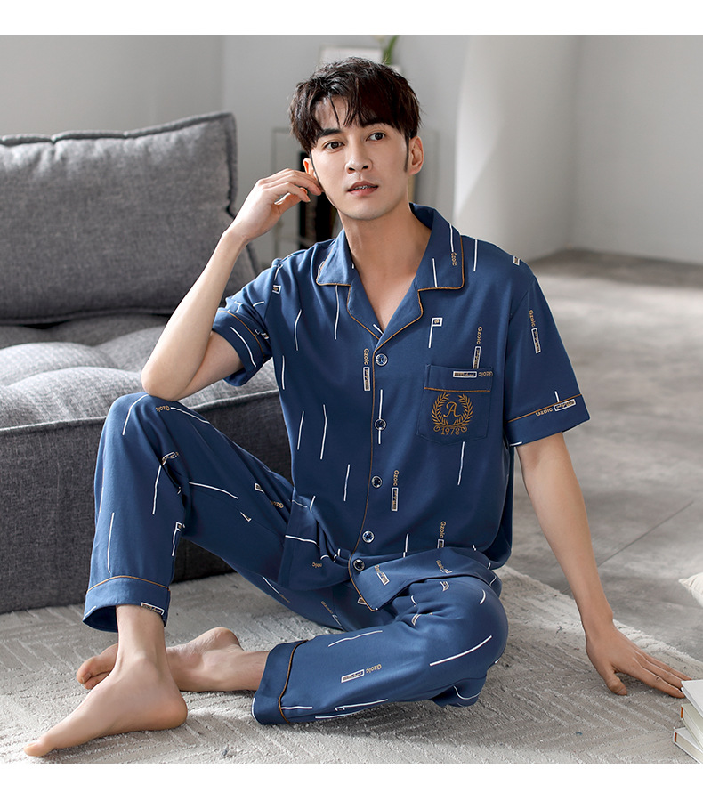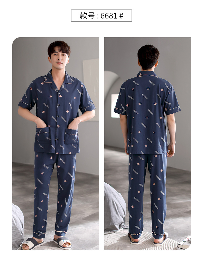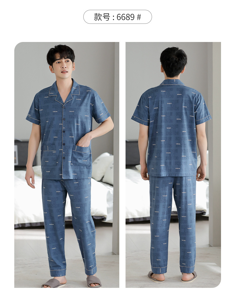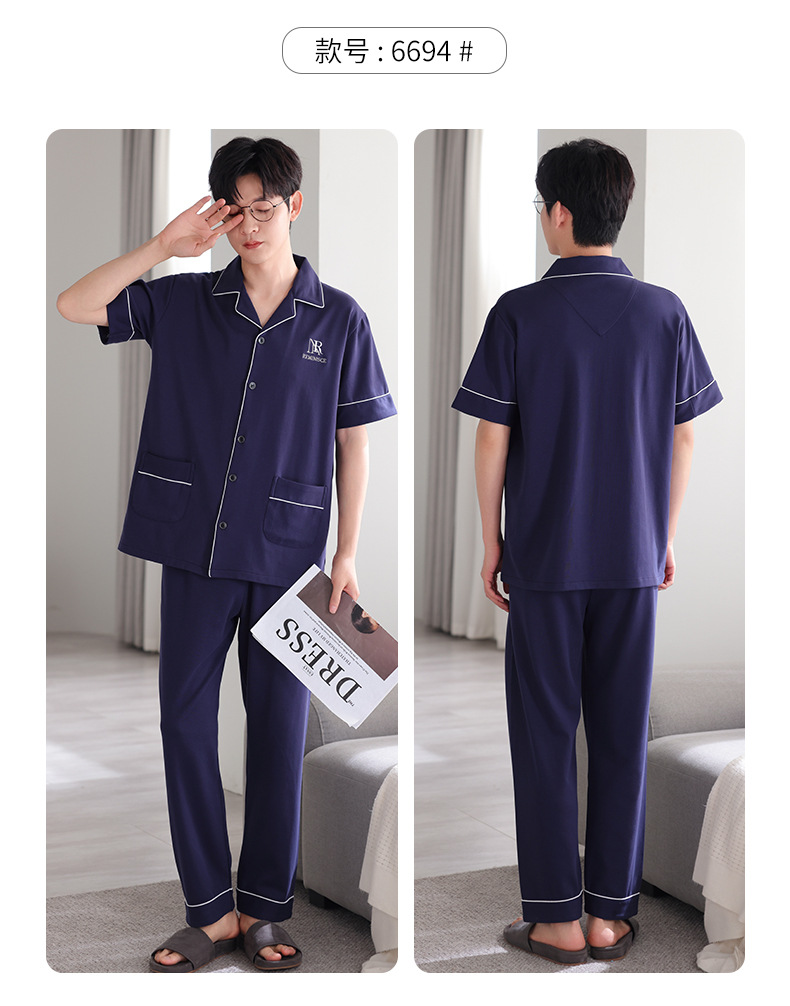 夏の新商品の男性パジャマは綿のカーディガンの半袖のズボンのゆったりした大きいサイズのカジュアルな家庭服を詰めて外に着ることができます。