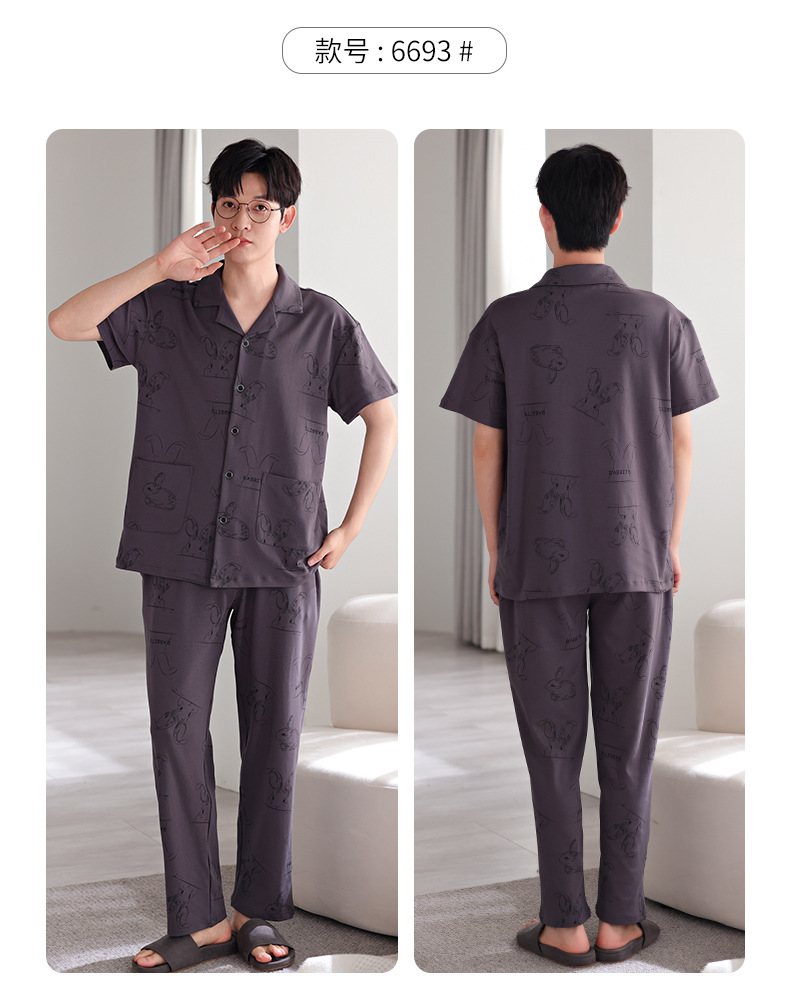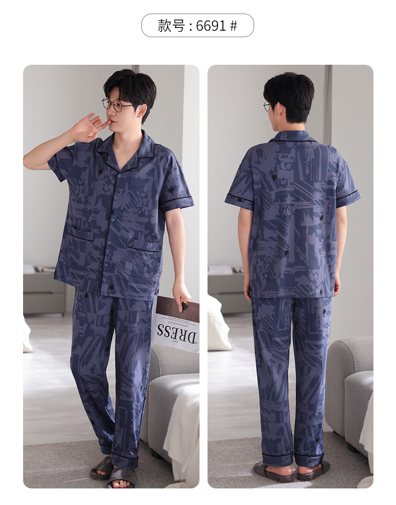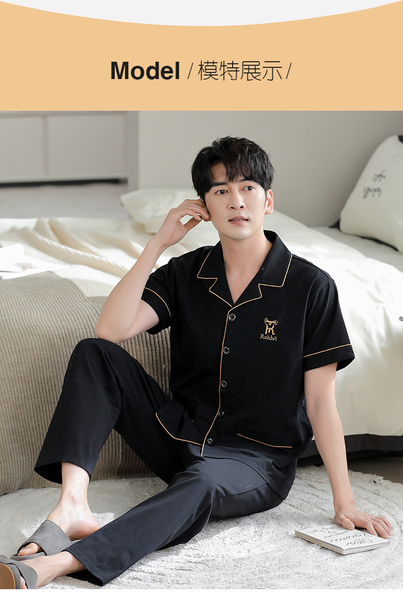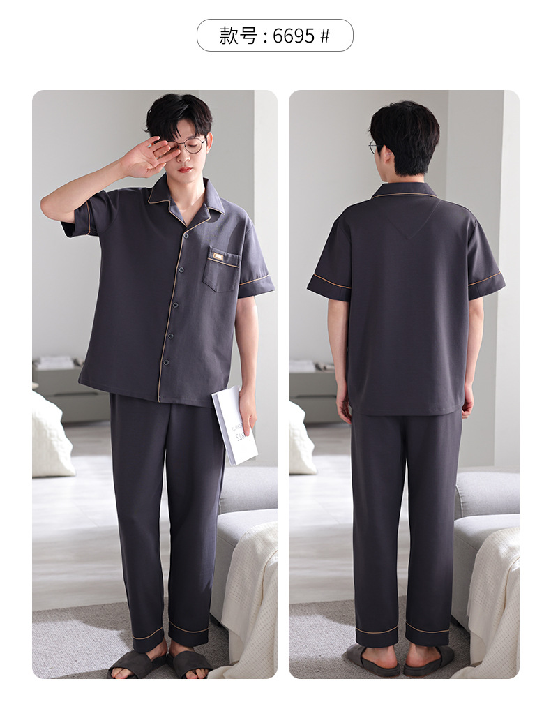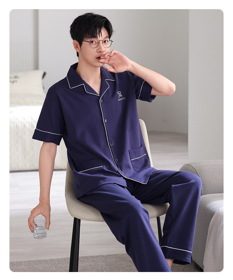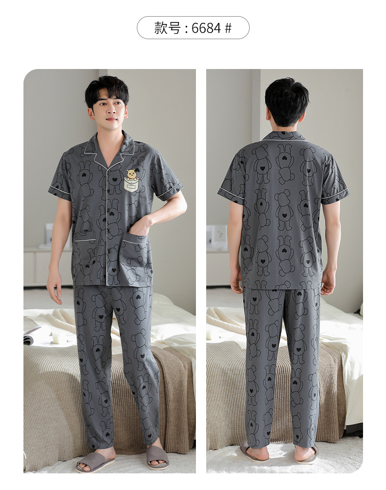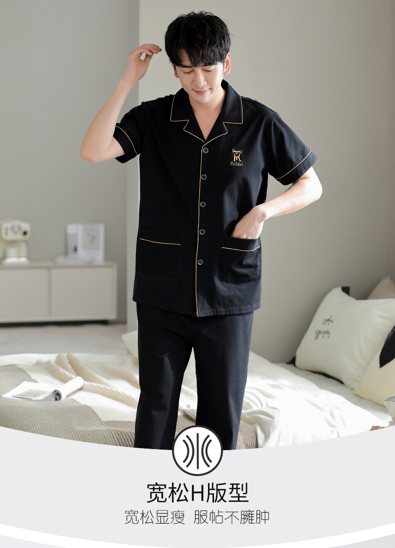 夏の新商品の男性パジャマは綿のカーディガンの半袖のズボンのゆったりした大きいサイズのカジュアルな家庭服を詰めて外に着ることができます。