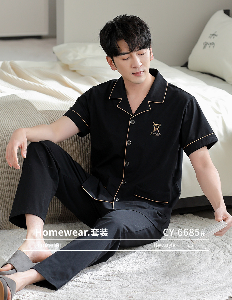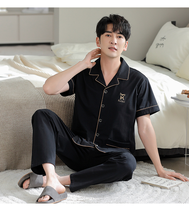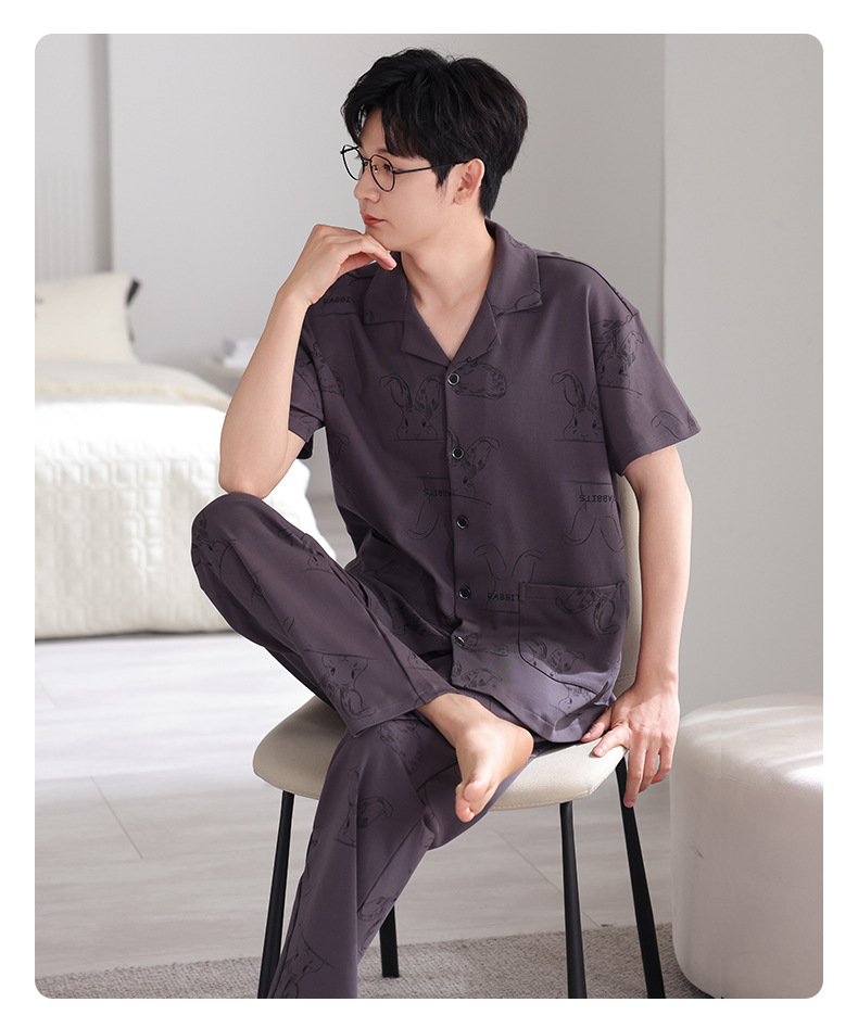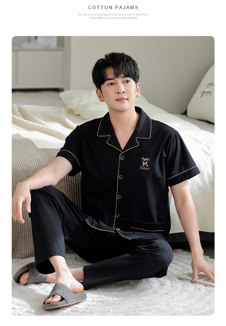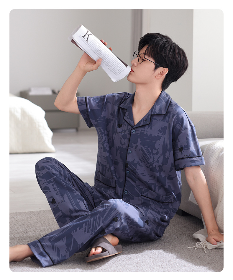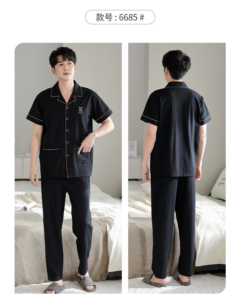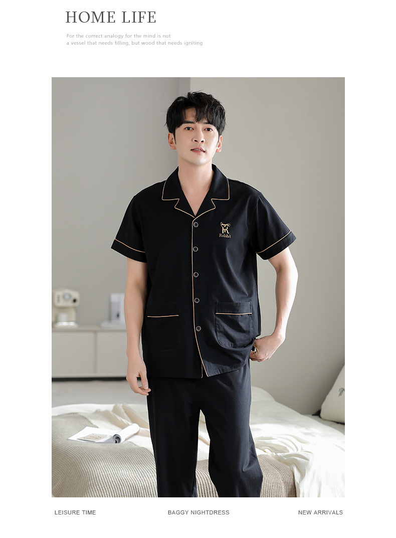夏の新商品の男性パジャマは綿のカーディガンの半袖のズボンのゆったりした大きいサイズのカジュアルな家庭服を詰めて外に着ることができます。
