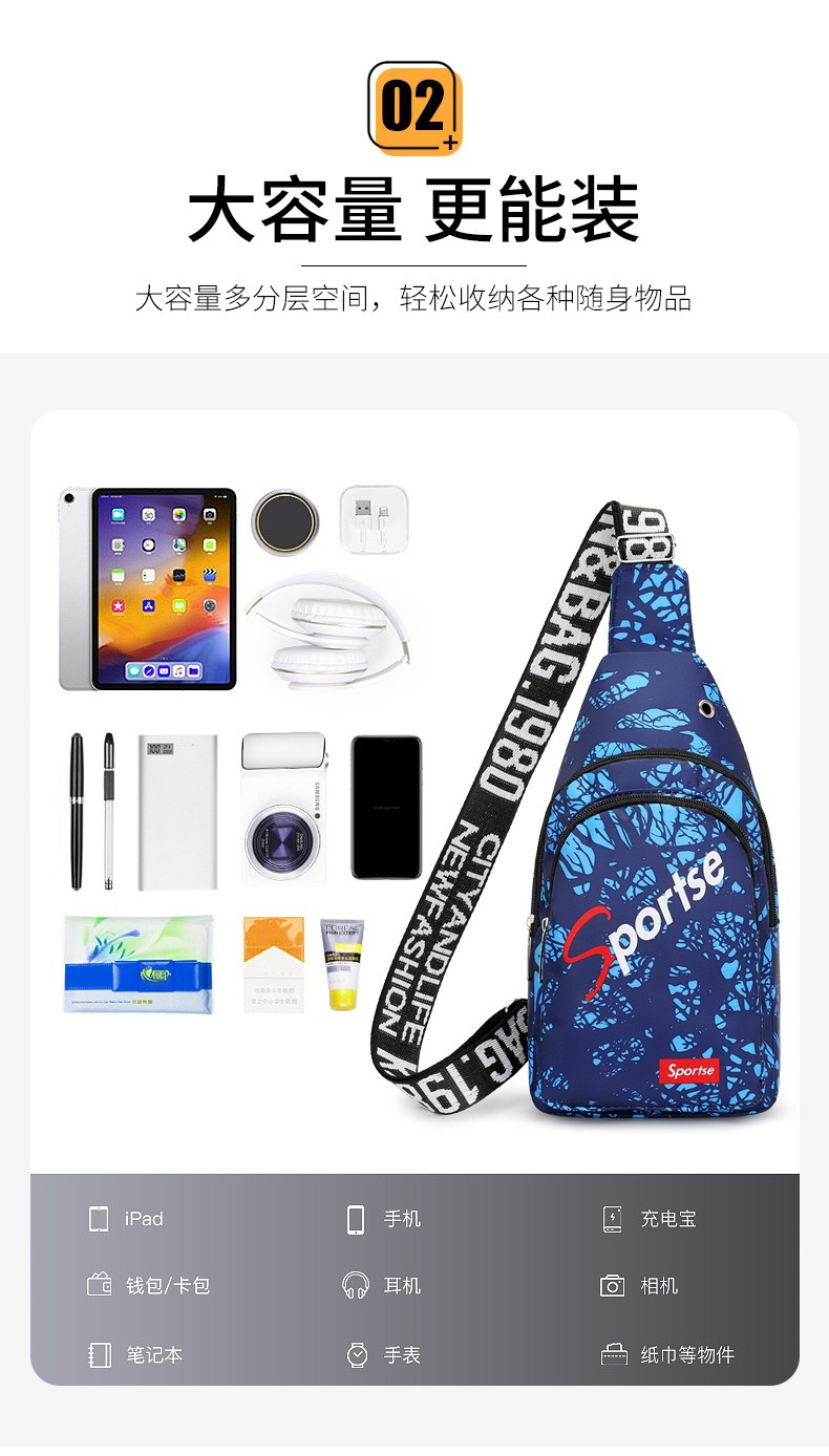 时尚斜挎包胸包多功能运动腰包实用大容量运动户外男士包外贸批发