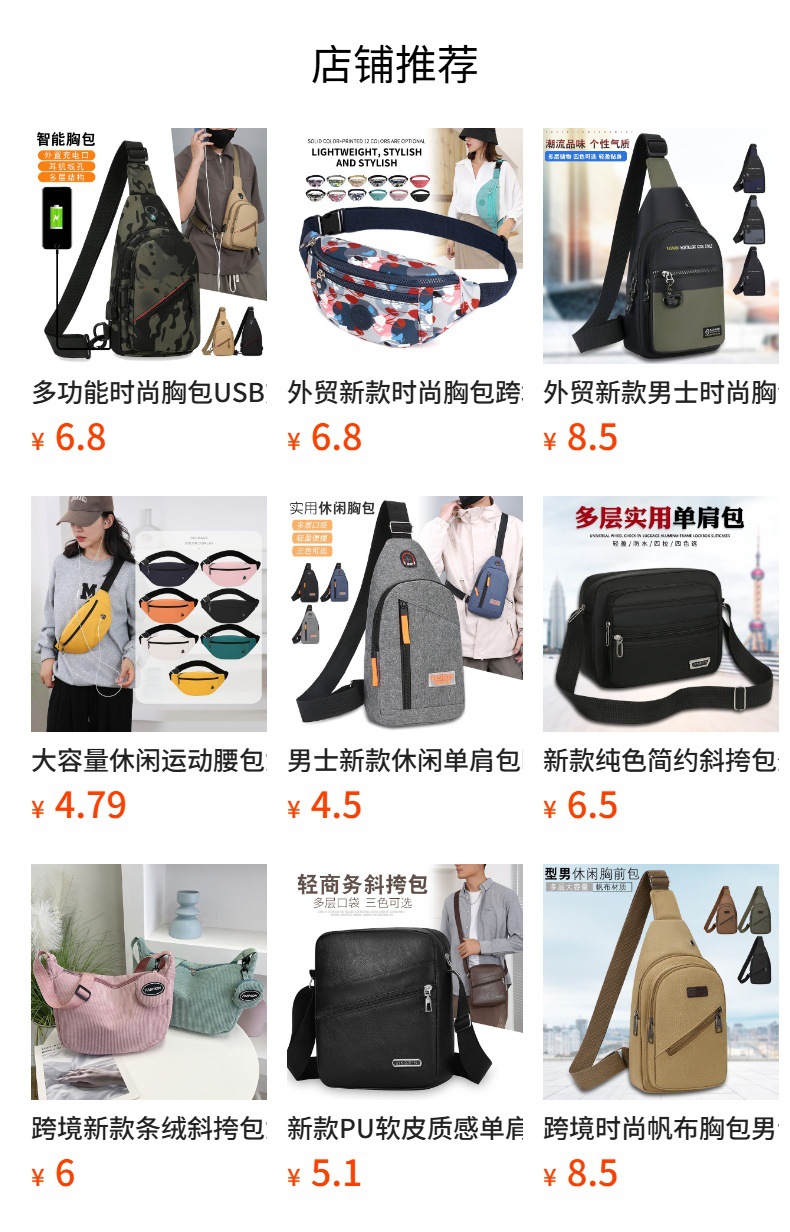 时尚潮流斜挎包男士通勤胸包休闲外贸单肩包大容量防水耐磨小挎包
