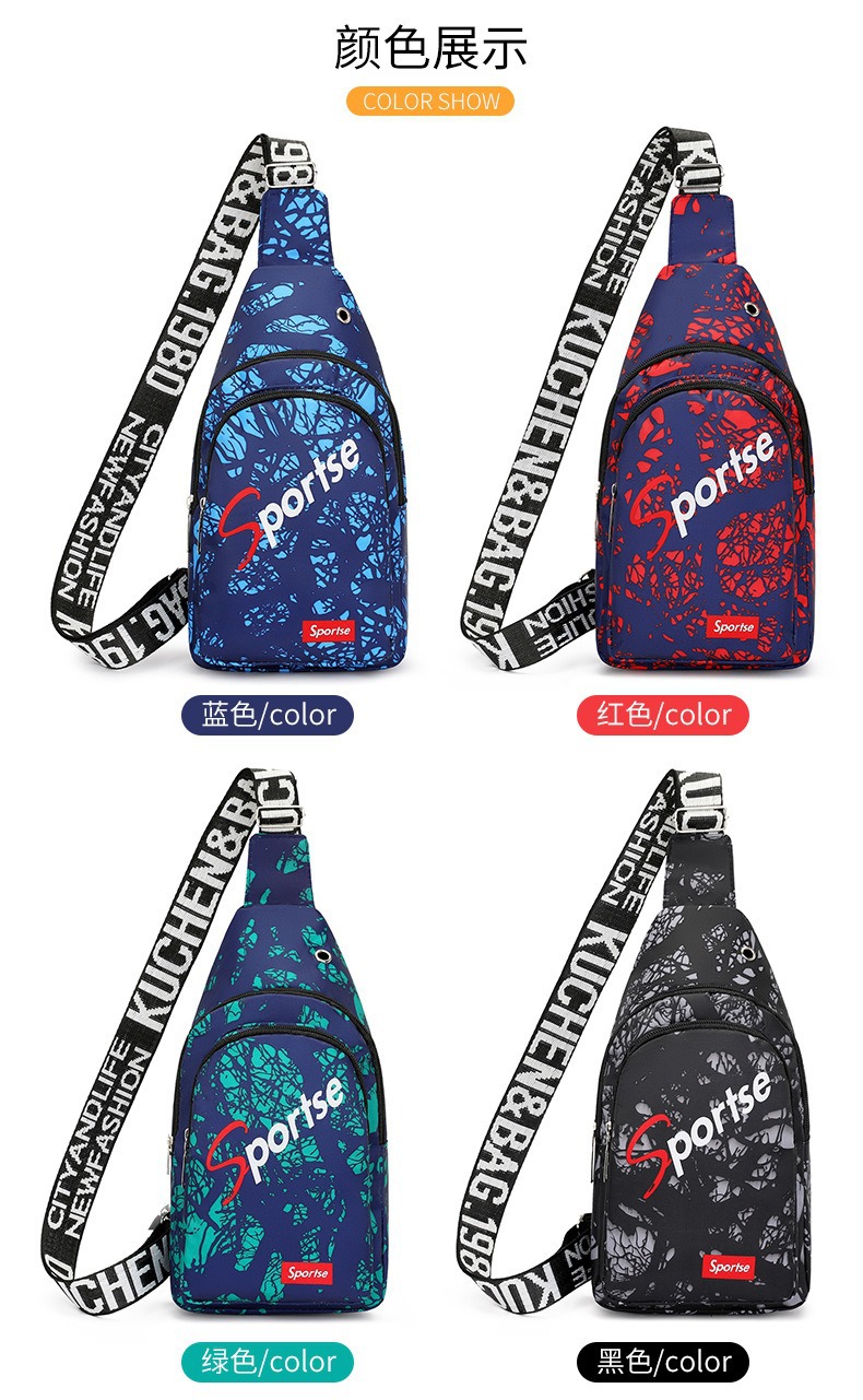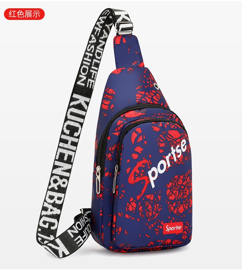 クロスボーダートレンディなメンズチェストバッグ新しいマルチコンパートメントプリントショルダーバッグサイクリングバッグ多用途カジュアルクロスボディ携帯電話バッグ