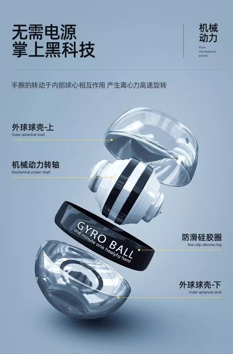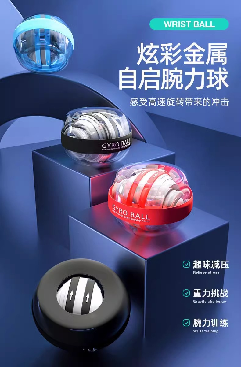 腕力ボール5段変色トレーニング手首アーム自动开始减圧金属静音远心フィットネスジャイロ握力ボール