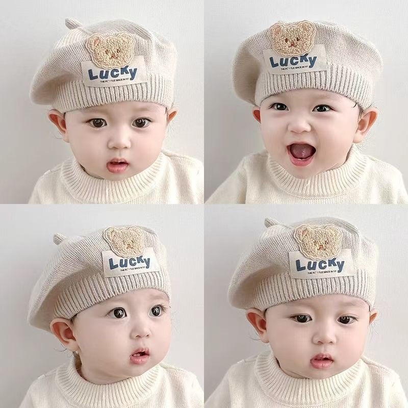 婴儿帽子秋冬款贝雷帽宝宝毛线帽可爱超萌男女宝秋季婴幼儿针织帽