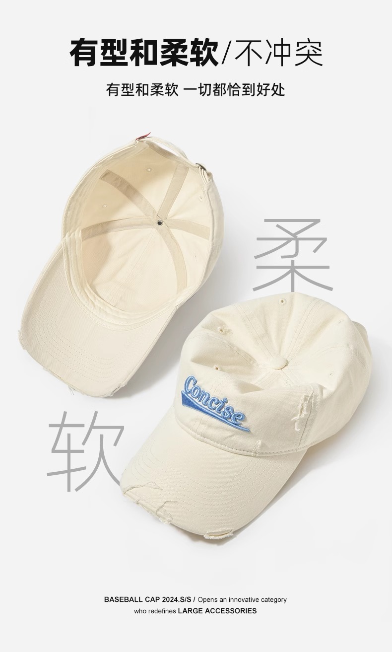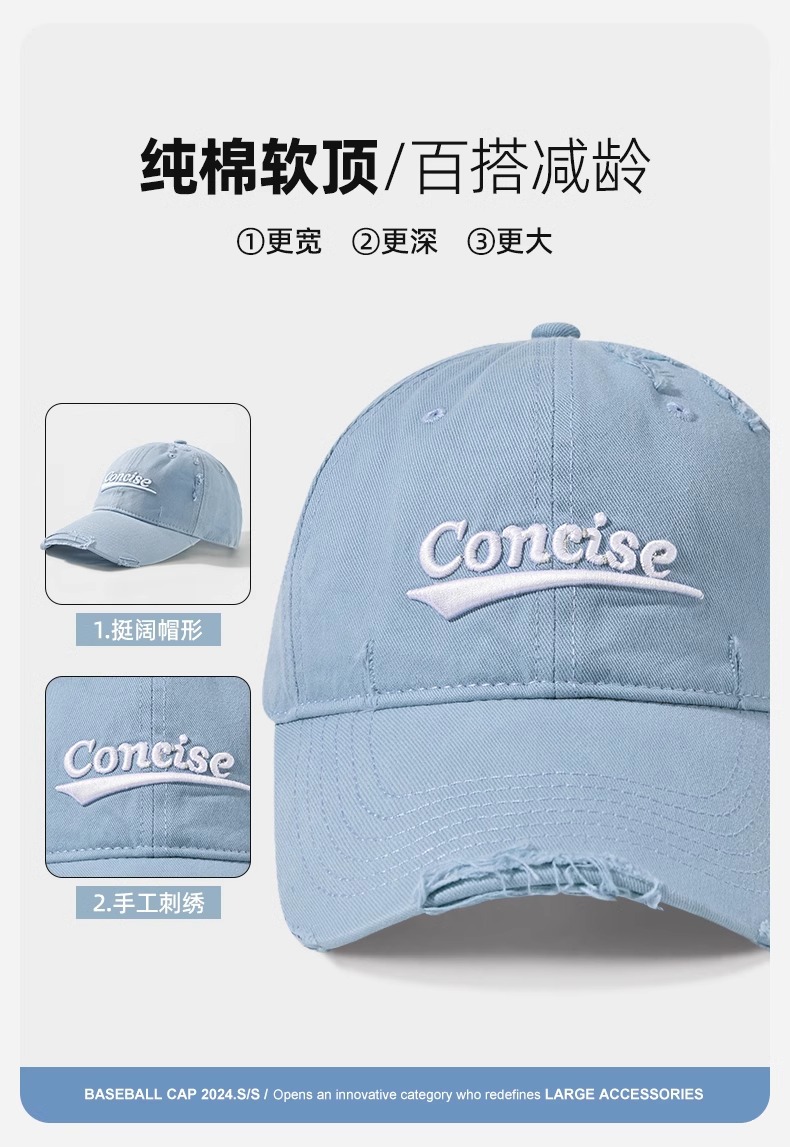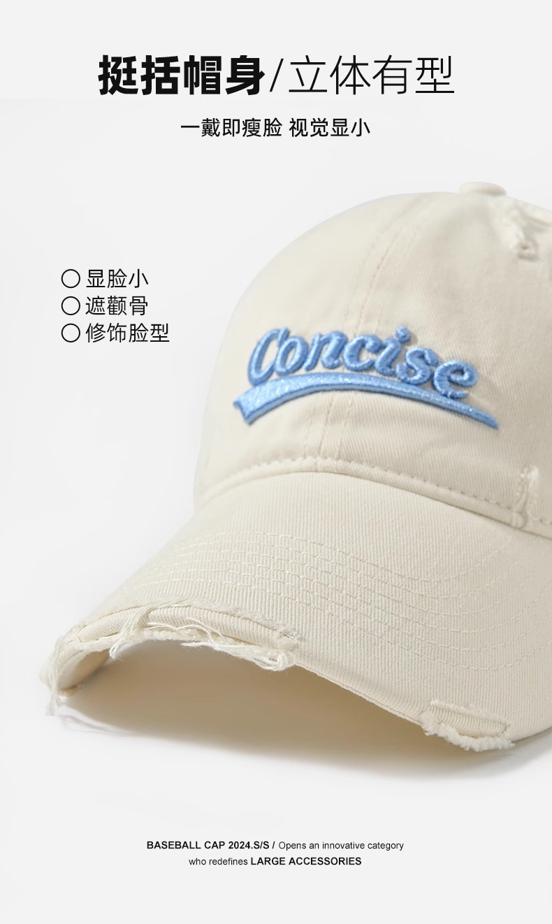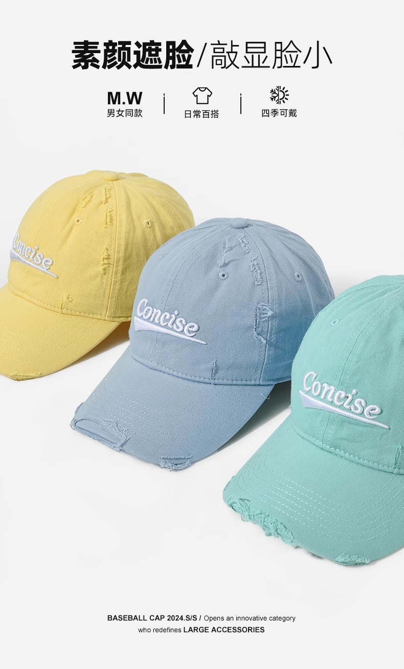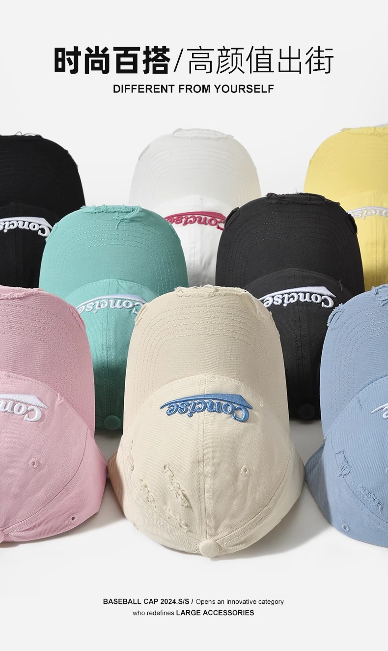 复古纯色牛仔棒球帽个性时尚破洞做旧鸭舌帽潮男女遮阳防晒帽Q 相