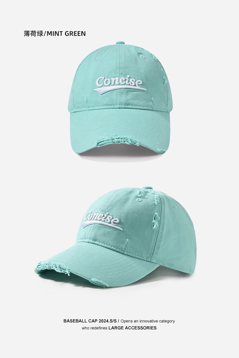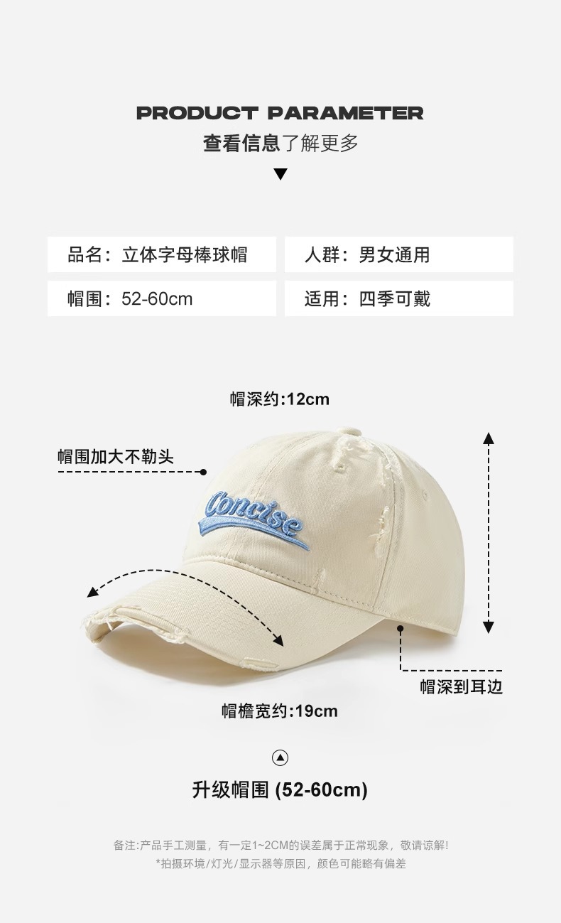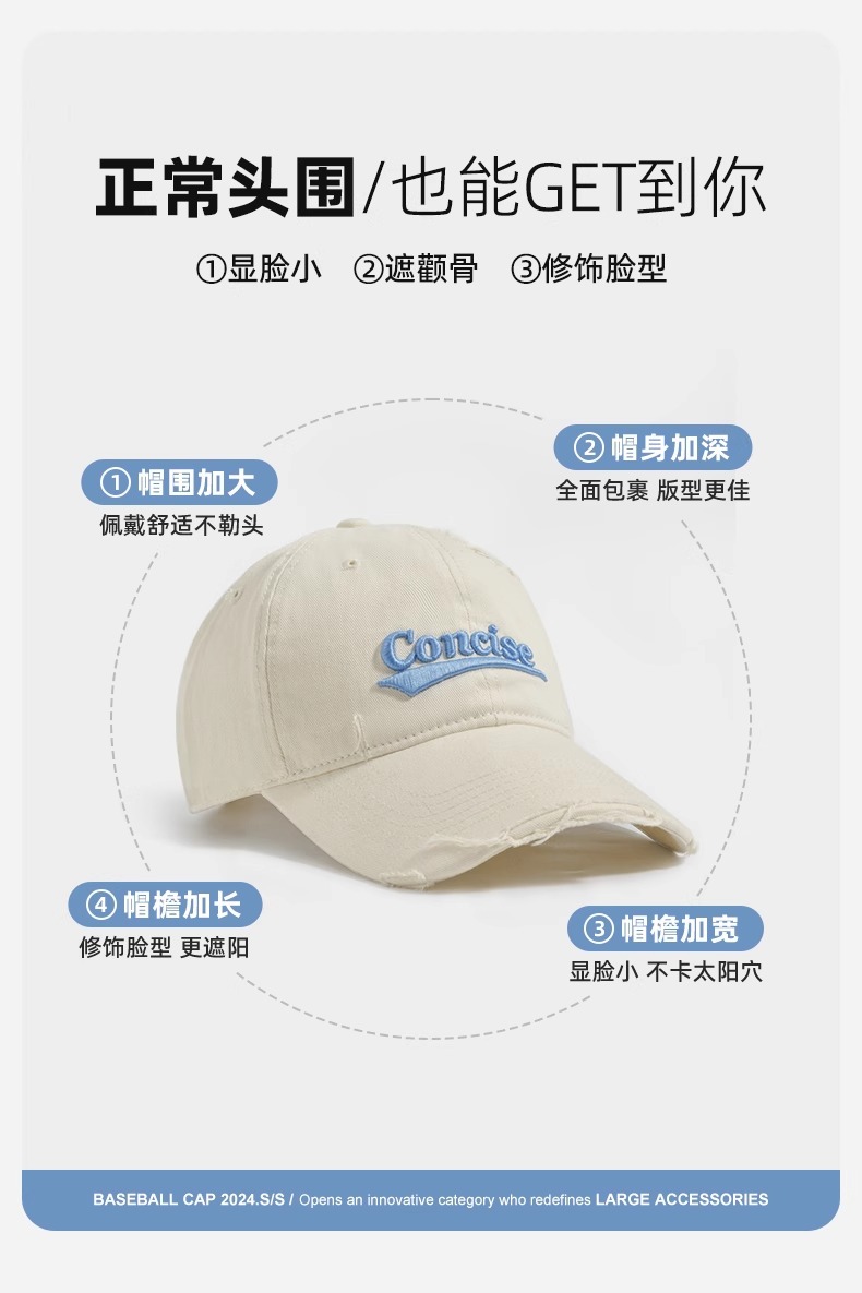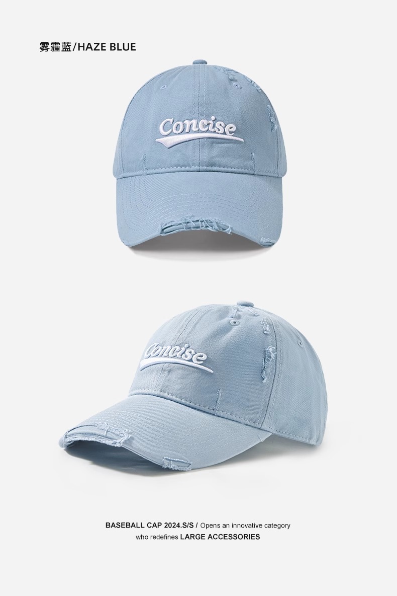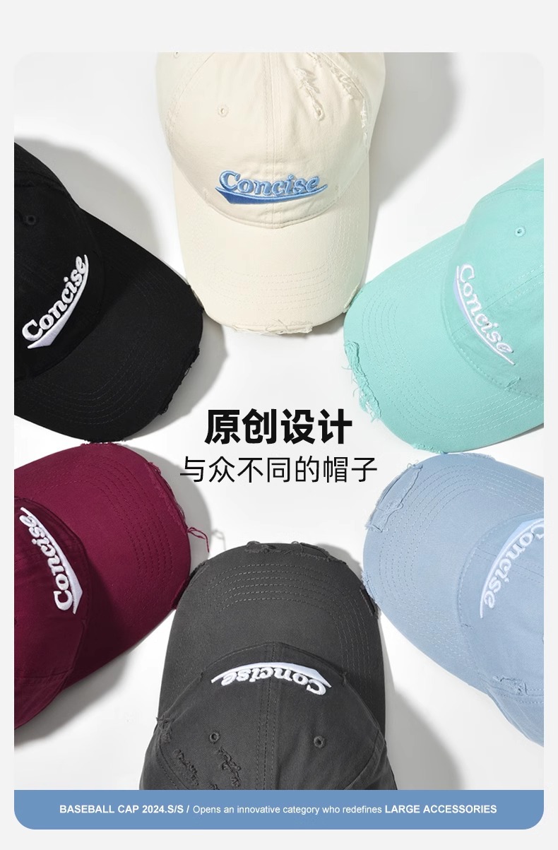 复古纯色牛仔棒球帽个性时尚破洞做旧鸭舌帽潮男女遮阳防晒帽Q 相