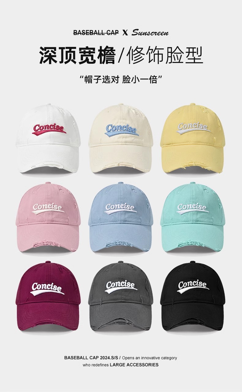 2025新型の穴を開けてアヒルの舌の帽子の女性の夏の日焼け止めの野球の帽子の広いつばの大きい顔を深めて顔の小さい帽子の男を現します。