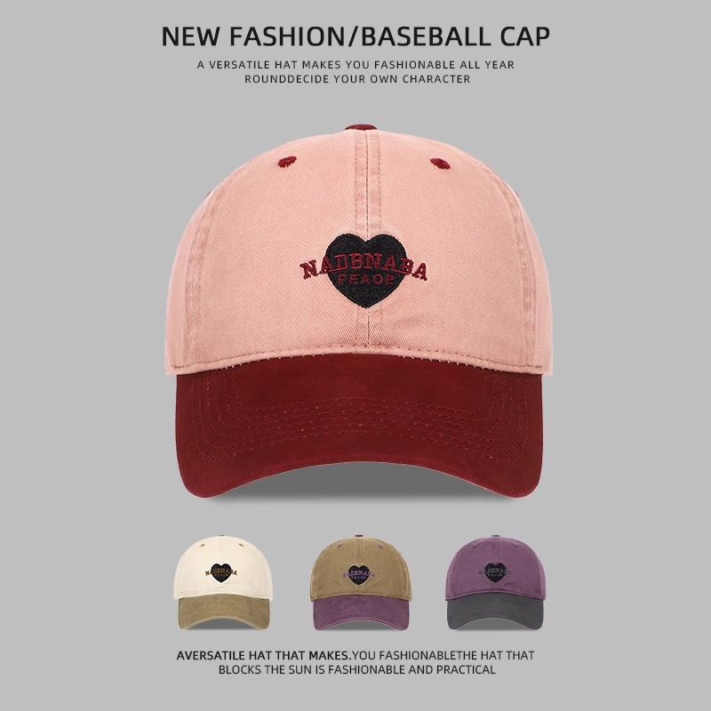 复古拼色刺绣棒球帽子女深顶大头围显脸小百搭遮阳防晒软顶鸭舌帽