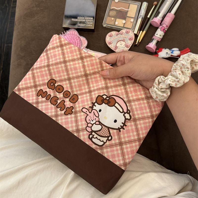 新しい漫画風キティキャンバストートバッグ、文芸学生向けカジュアルハンドバッグ、通勤用ランチバッグ、ショッピングバッグ