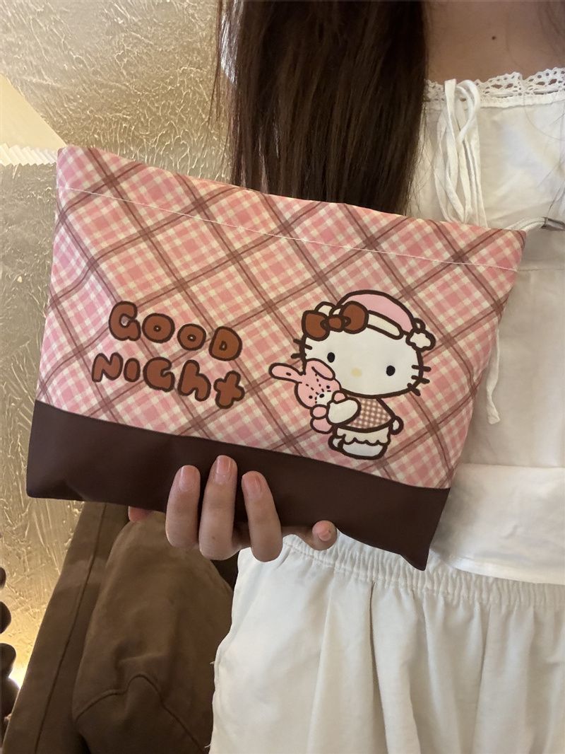 日本 kt 猫プリント テンダーピンク かわいい女の子 メッシュバッグ 透明カードバッグ 化粧品袋 生理用ナプキンバッグ 収納