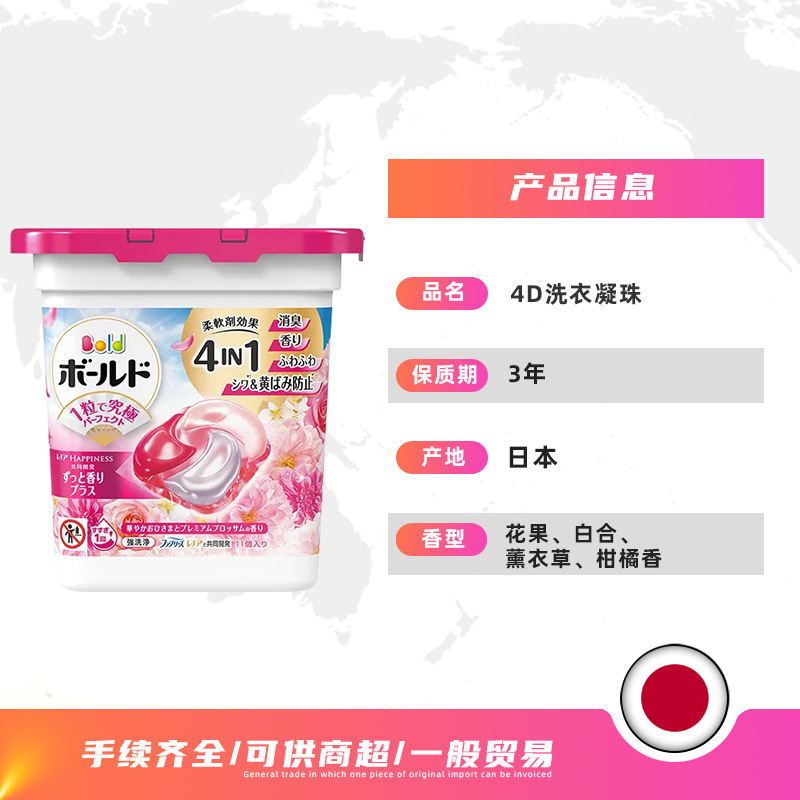 日本进口宝洁洗衣球柔顺球去污洁净留香洗衣凝珠11粒装一件代发