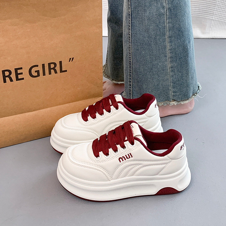 外国貿易ファッション厚底スポーツカジュアルシューズ 2025 新しい多用途ラウンドトゥ白靴身長を伸ばす女性のスニーカー