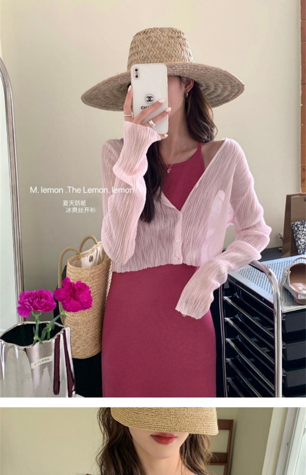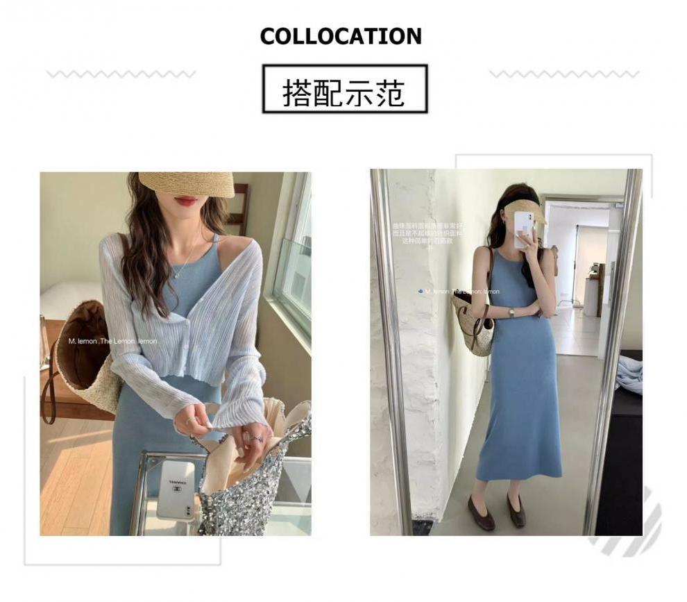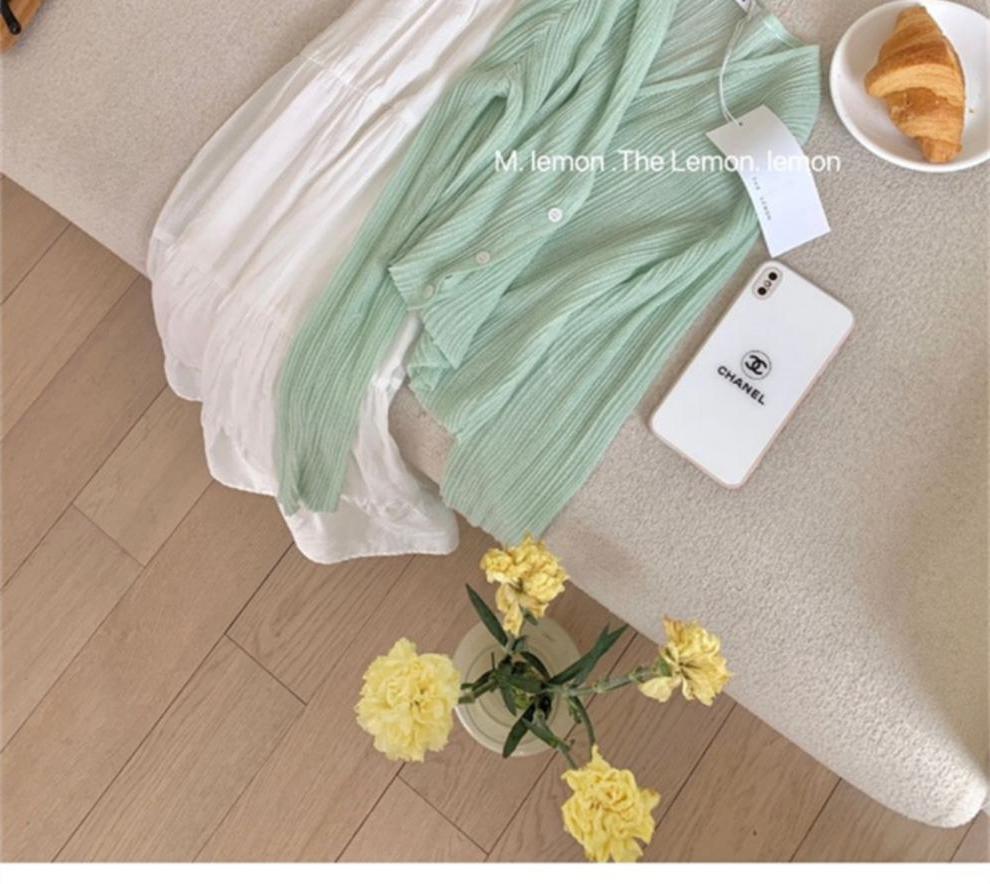 白いアイスニットの日焼け止めカーディガンの女性の薄いコートのショールの夏にストラップのワンピースの外にブラウスを掛けます。