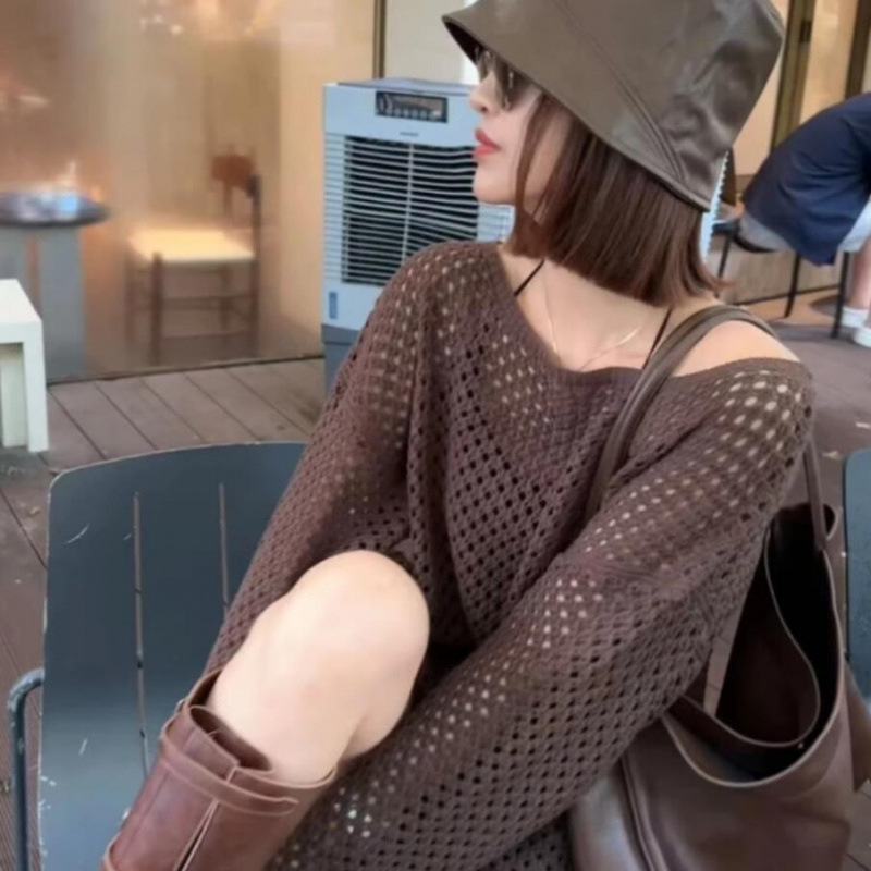 现货 高级感复古镂空长袖毛衣女2025早秋百搭洋气时尚针织上衣