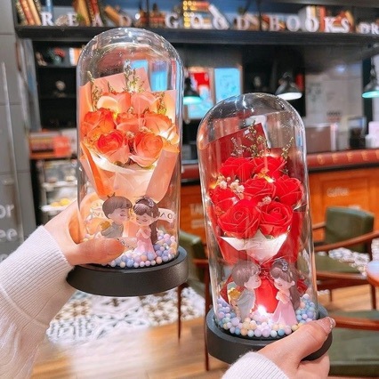 情人节礼物送女友永生花跨境玻璃罩生日玫瑰花束网红表白小夜灯