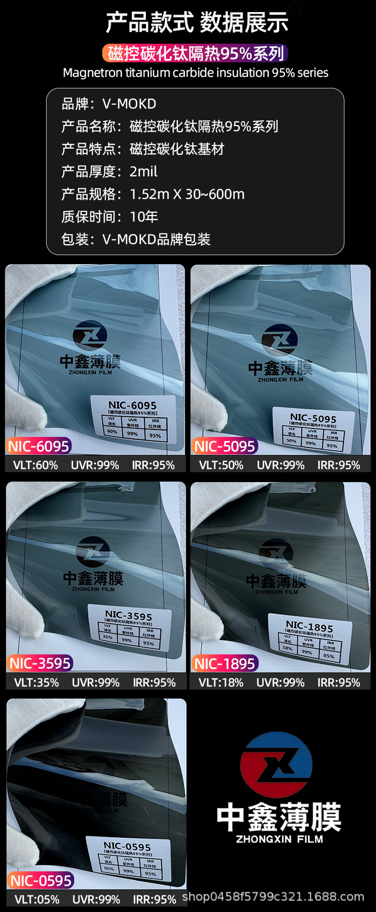 自動車太陽膜卸売り磁気制御炭化チタン断熱95自動車窓膜フィルム断熱防爆膜工場直販