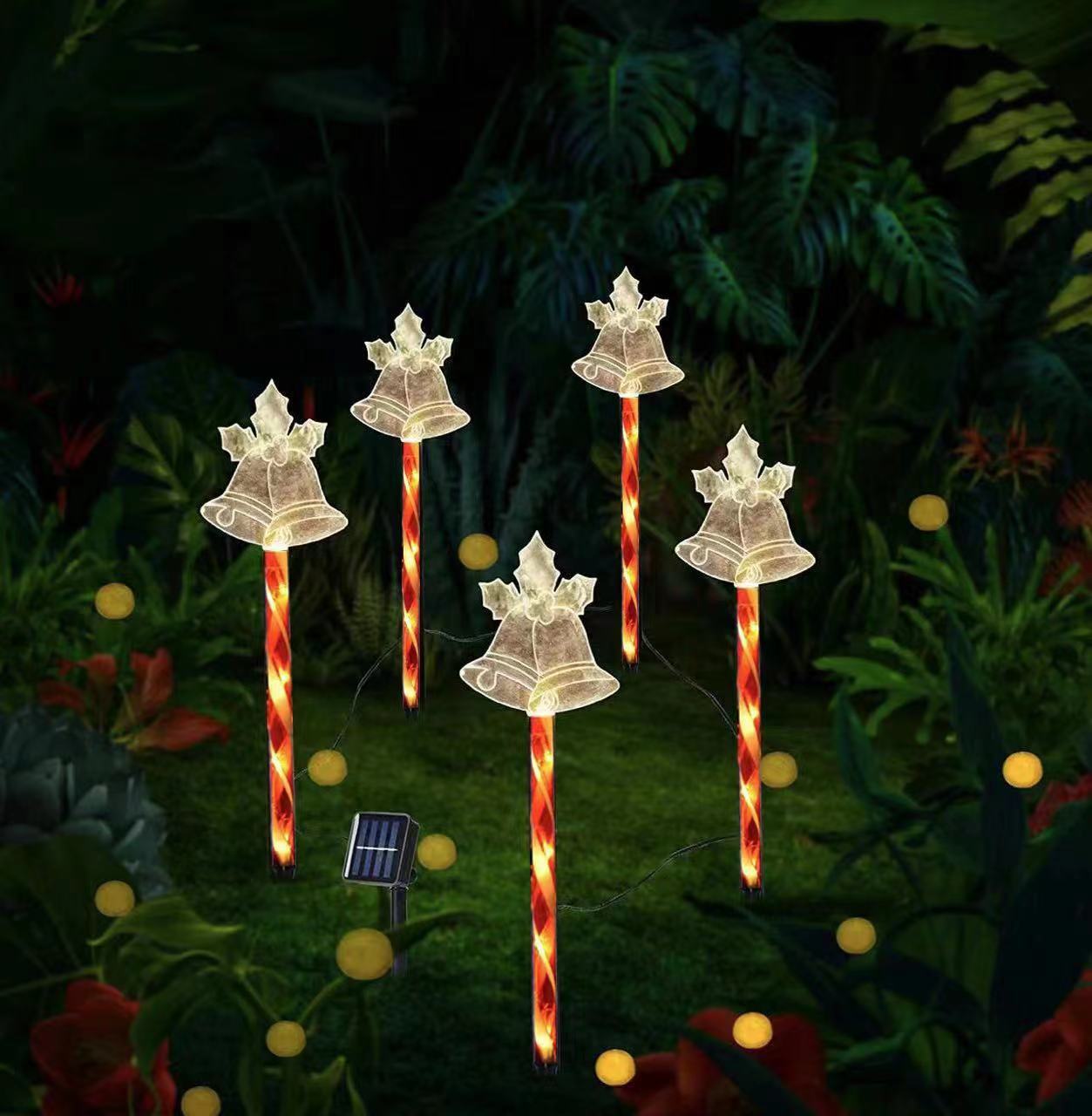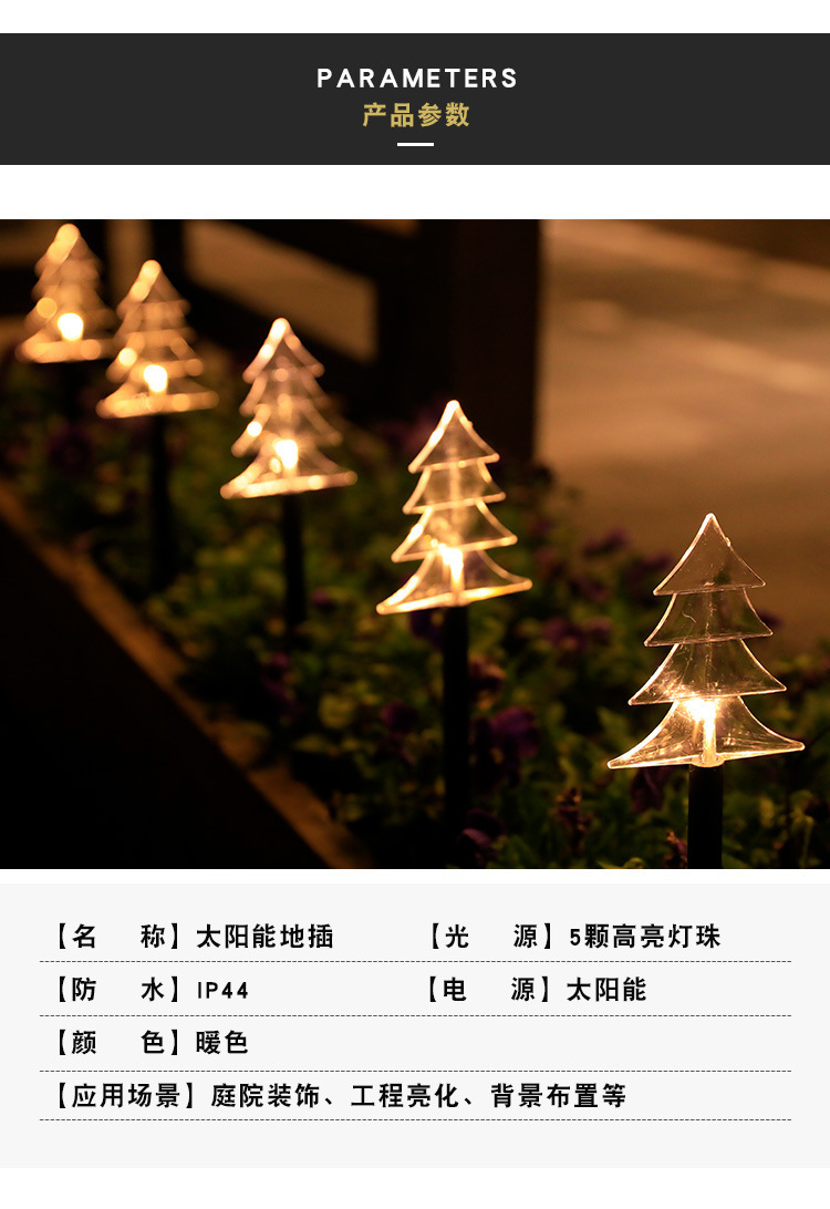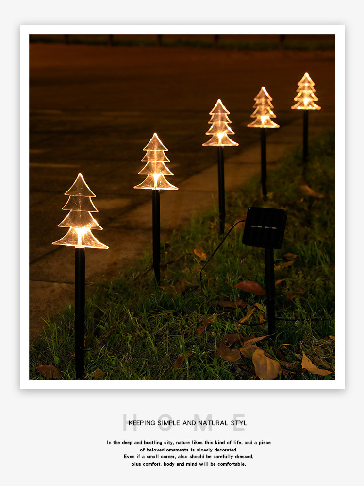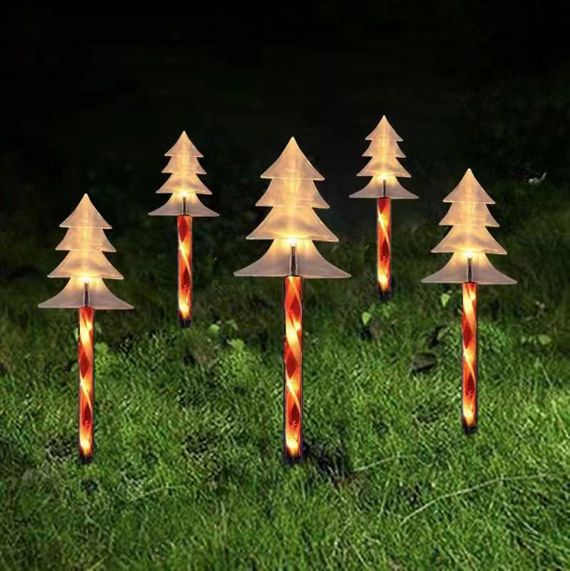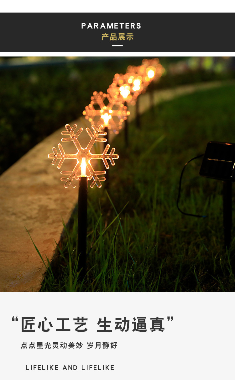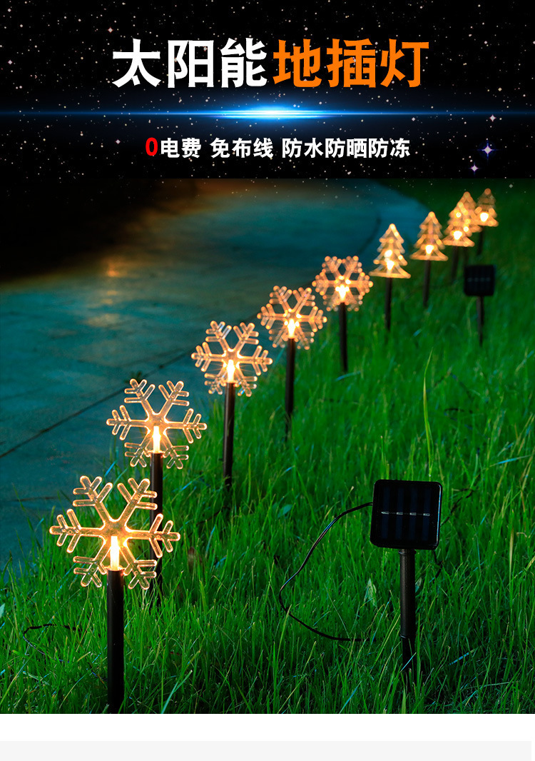 Led太陽エネルギーは庭の五芒星のクリスマスツリーの雪の花を挿して飾ります。