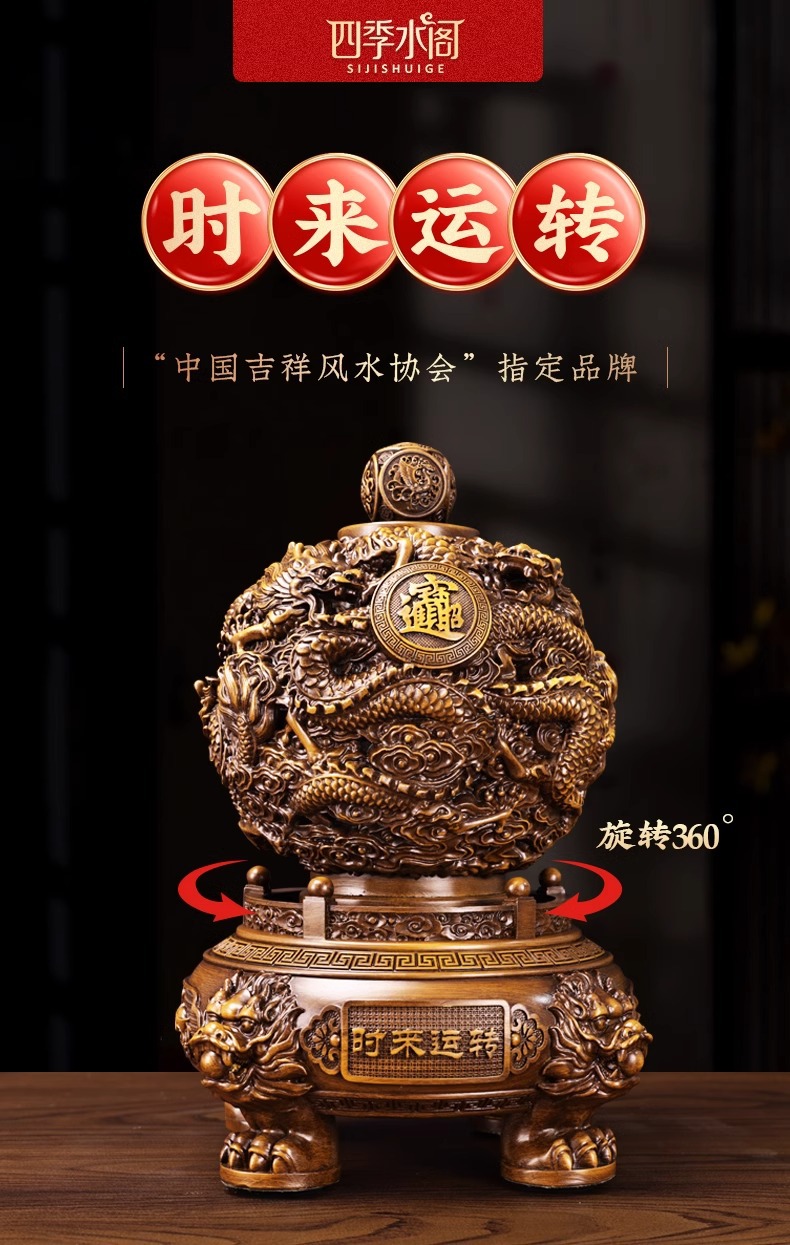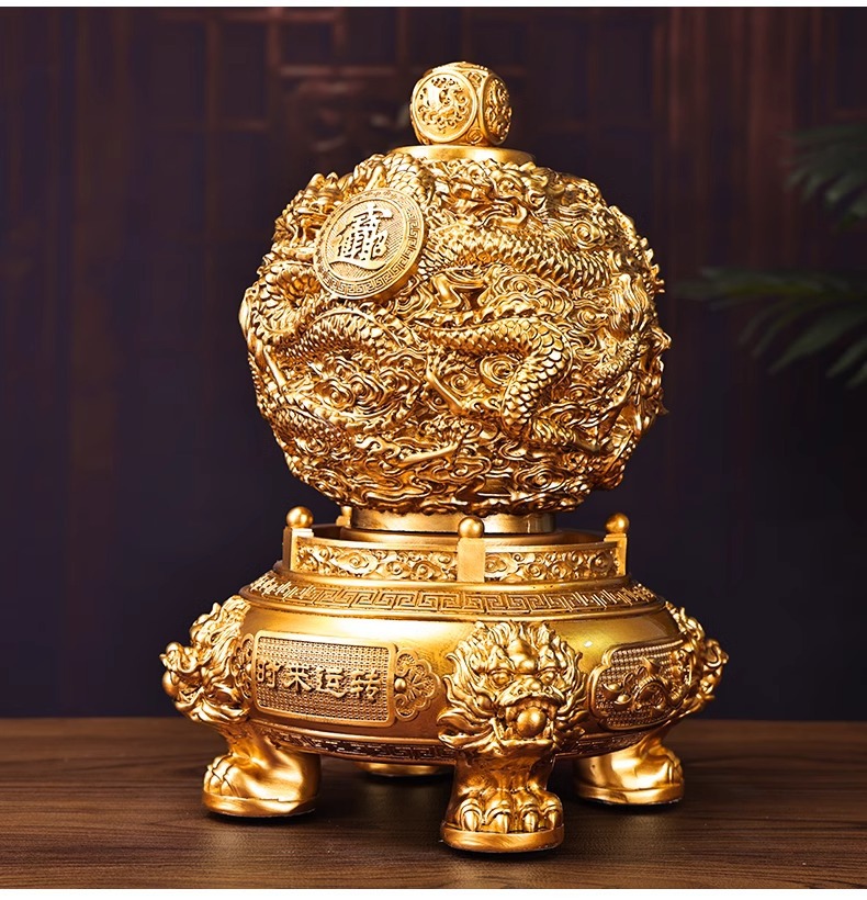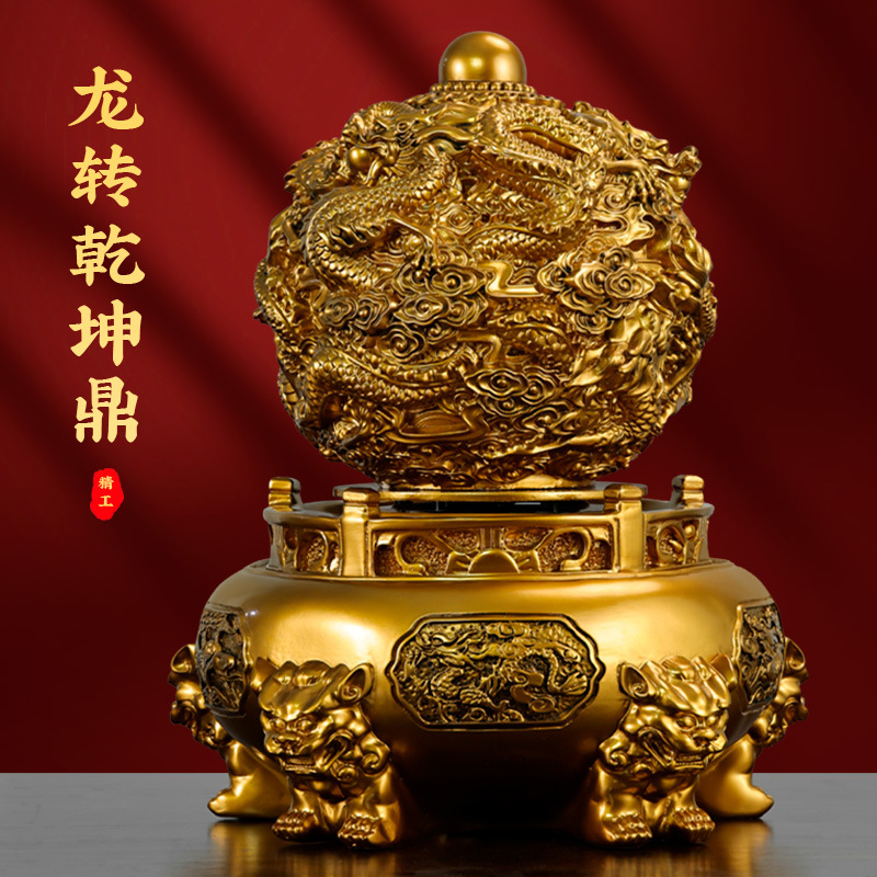 电动九转乾坤转运珠摆件九龙鼎办公室桌面装饰品九龙乾坤鼎摆件