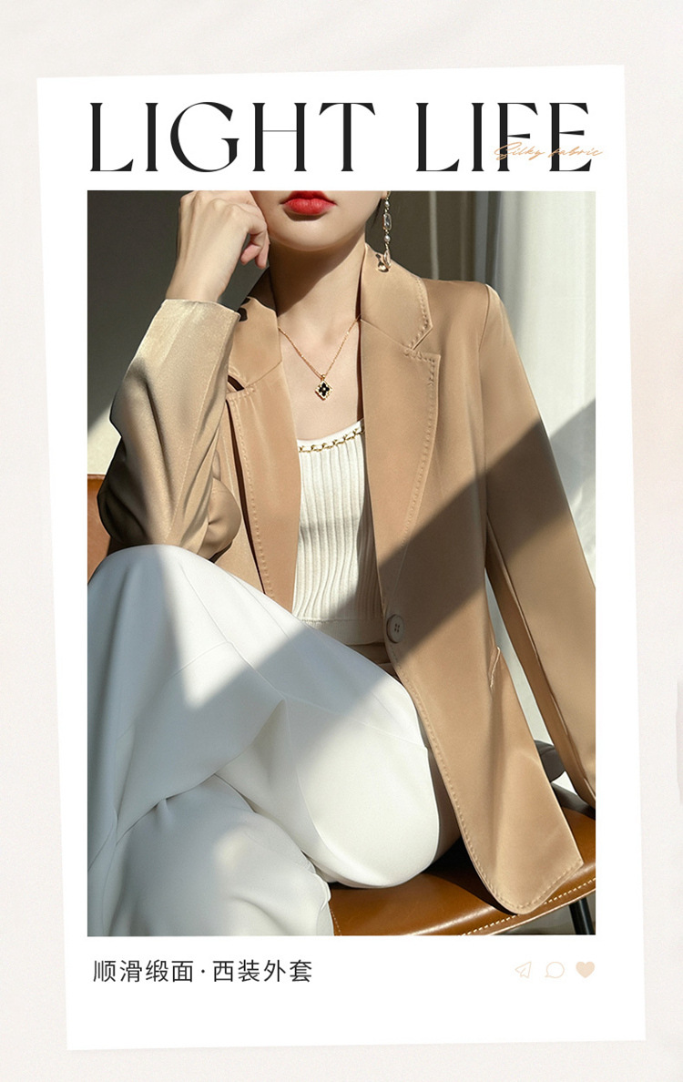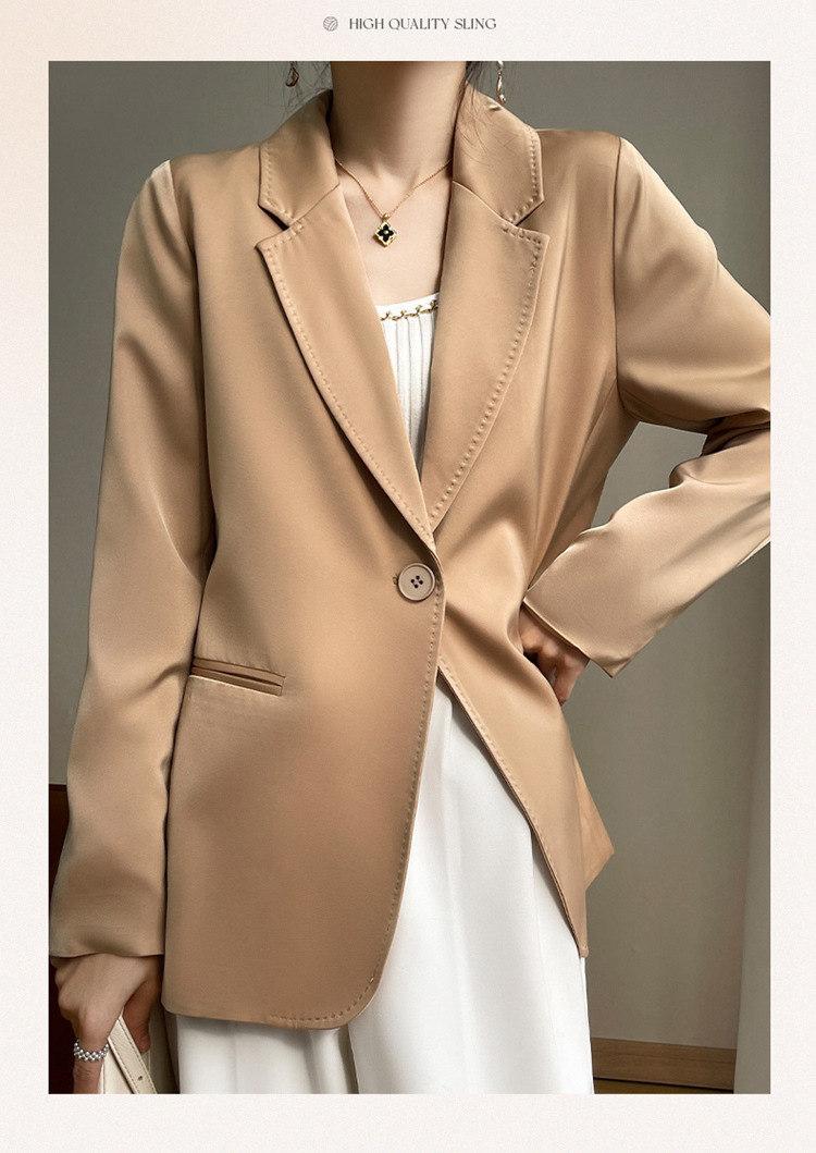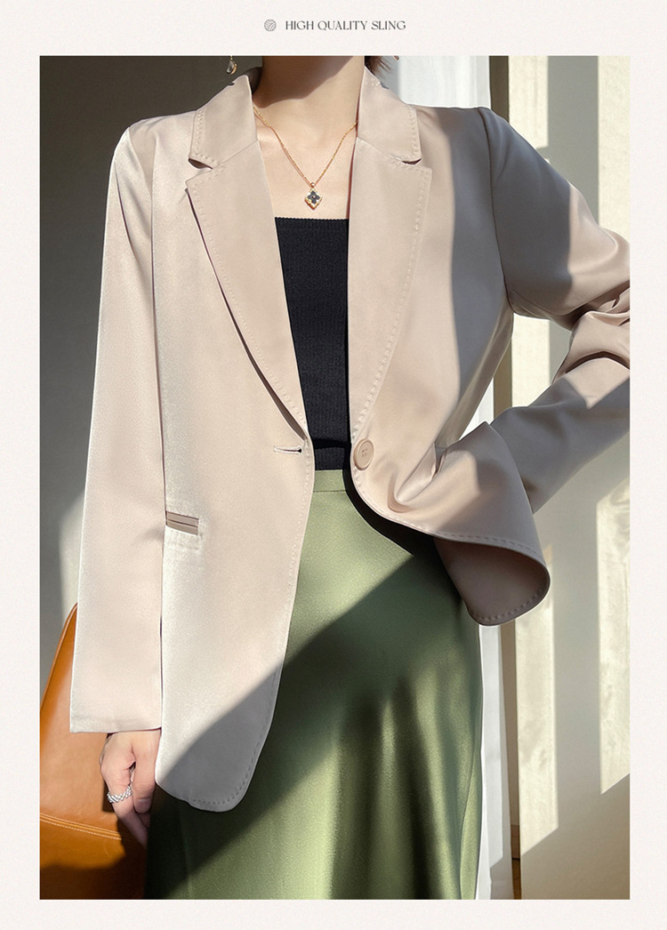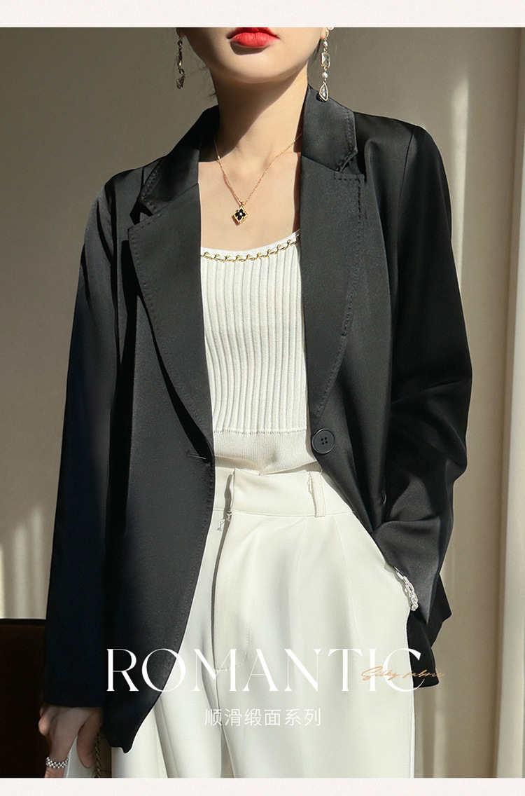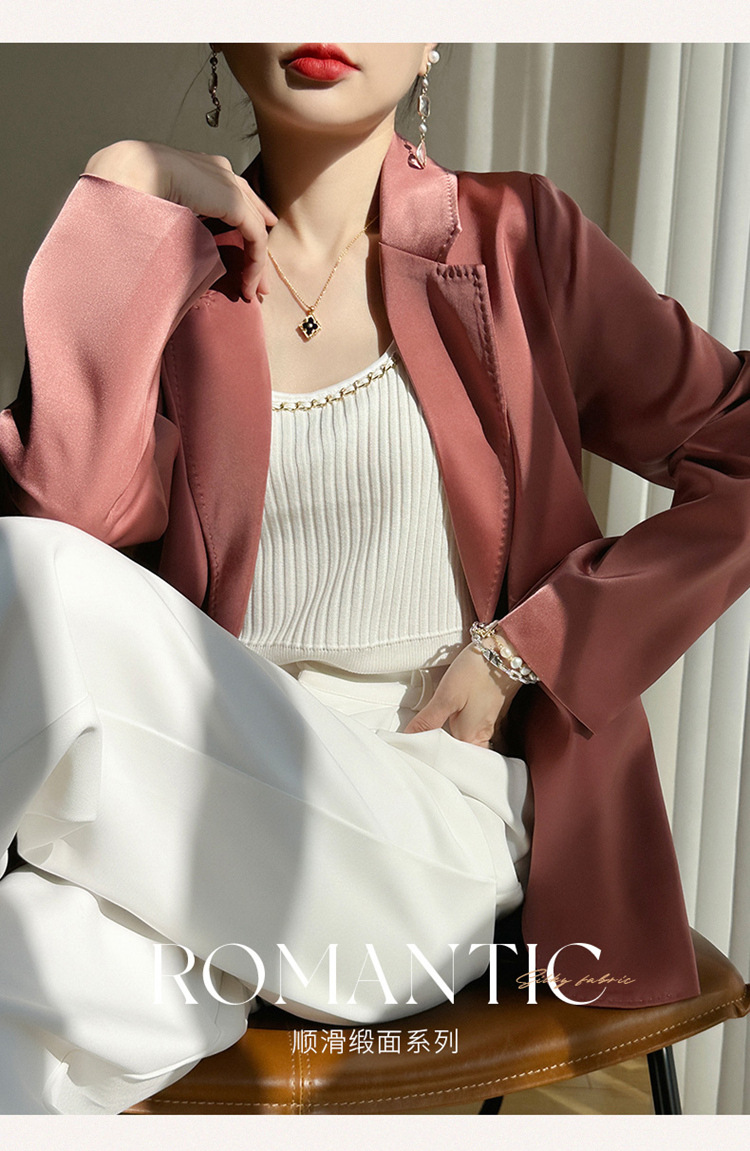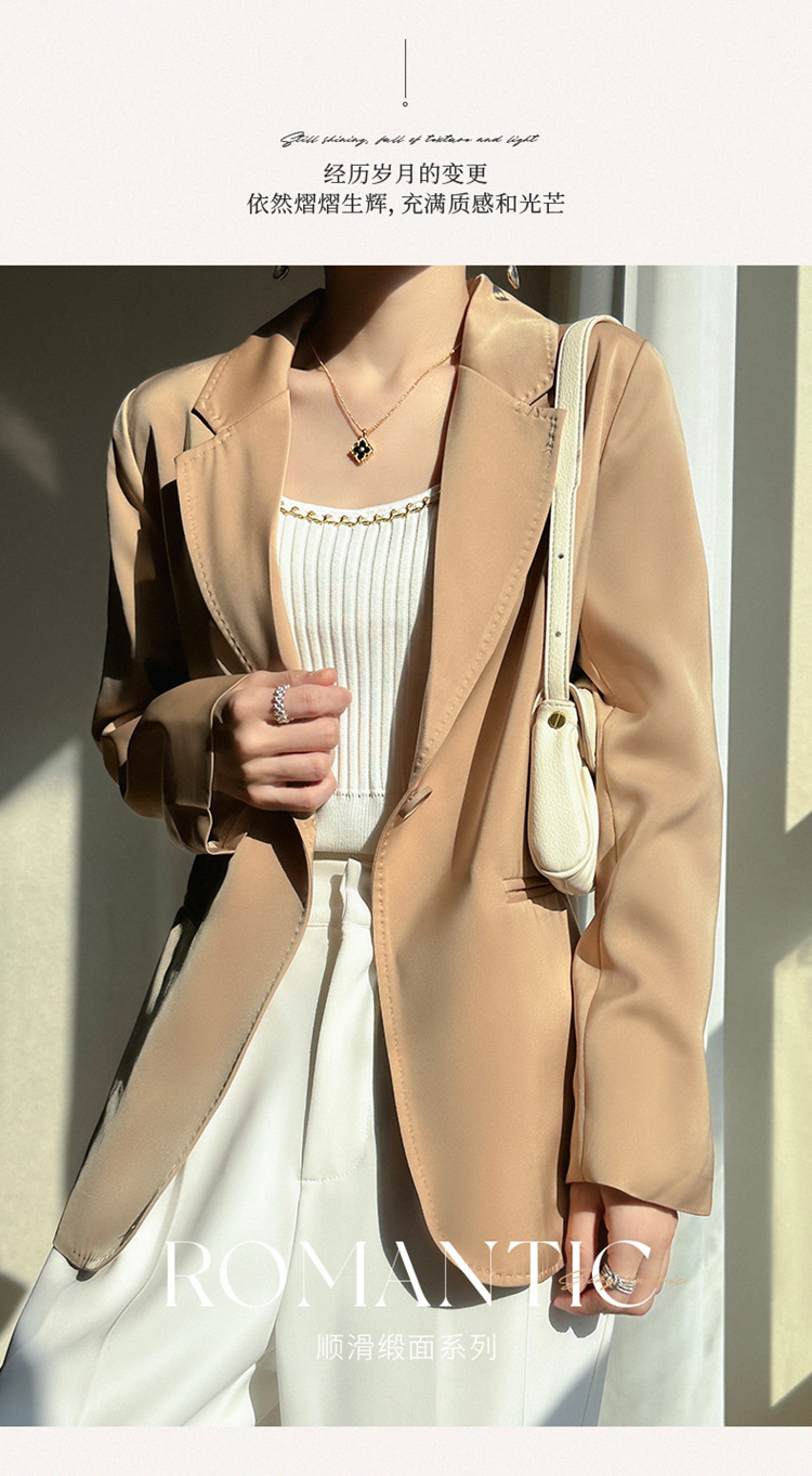 酢酸サテンの小さいスーツのコートの女性2025年春秋の新型の気質はやせているシルクのカジュアルなスーツの上着を現します。