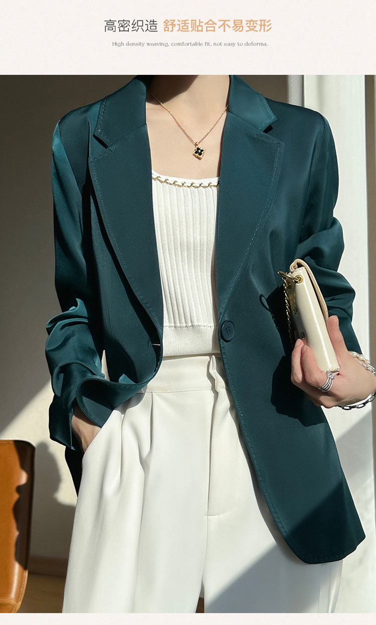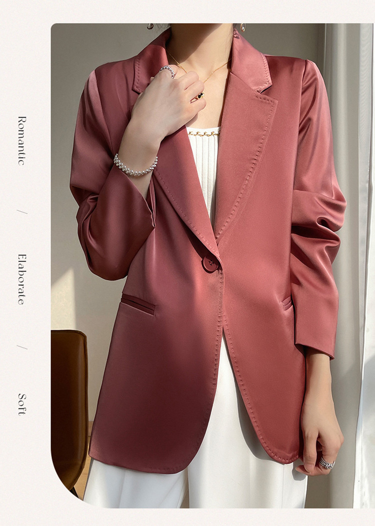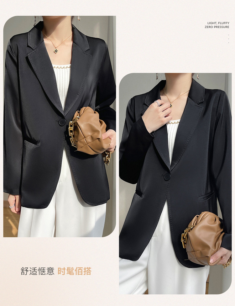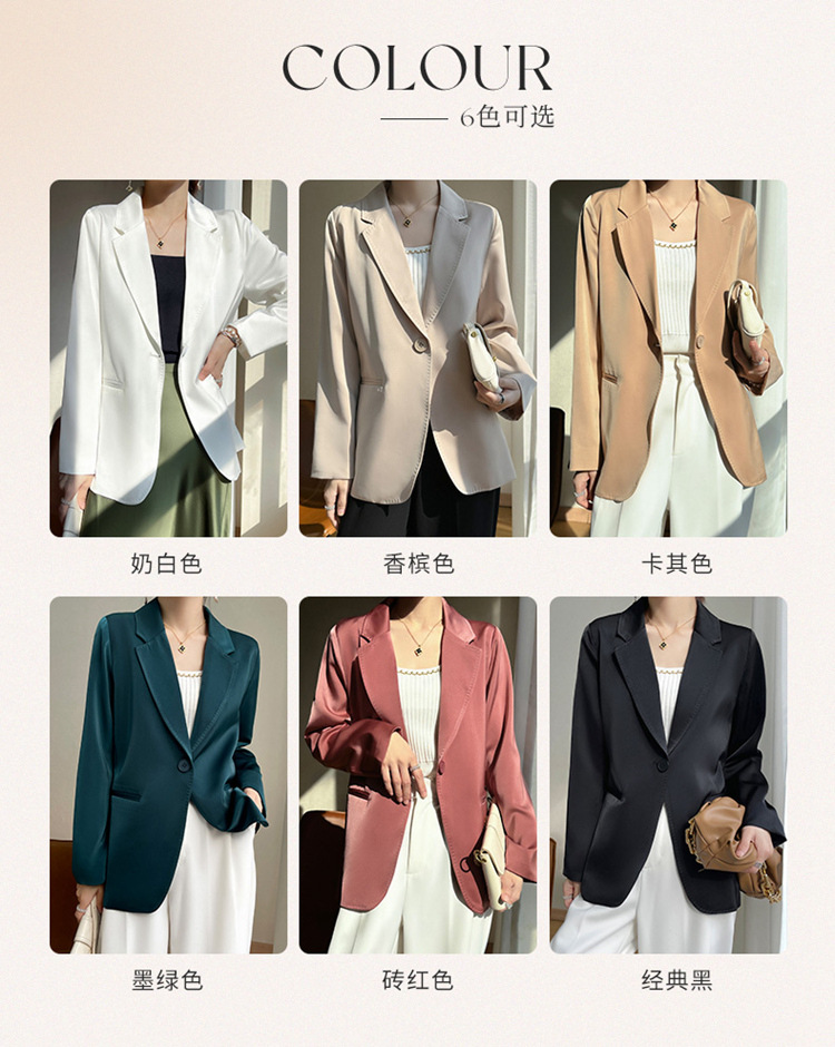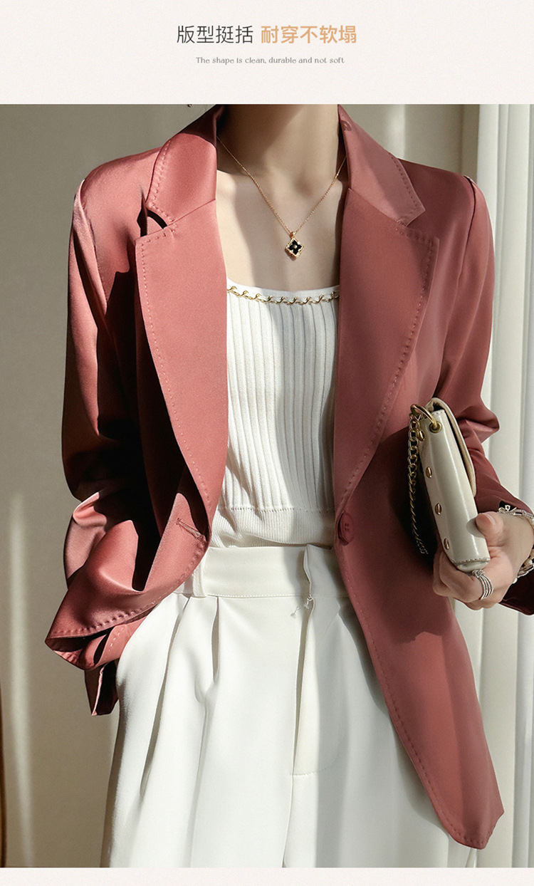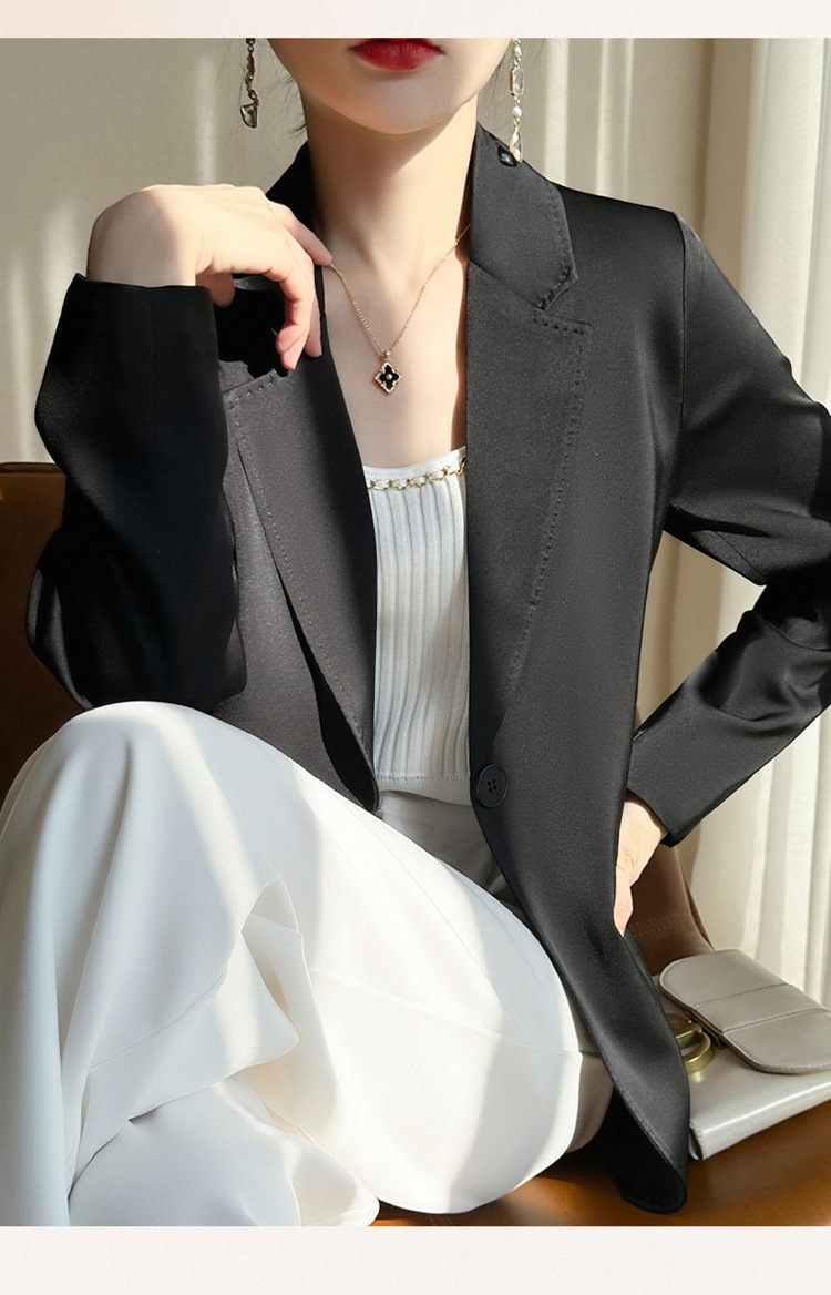 酢酸サテンの小さいスーツのコートの女性2025年春秋の新型の気質はやせているシルクのカジュアルなスーツの上着を現します。