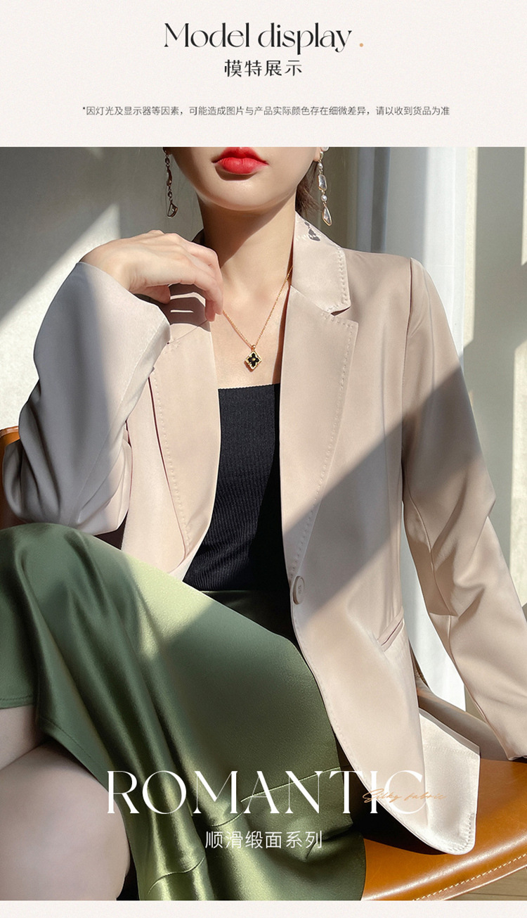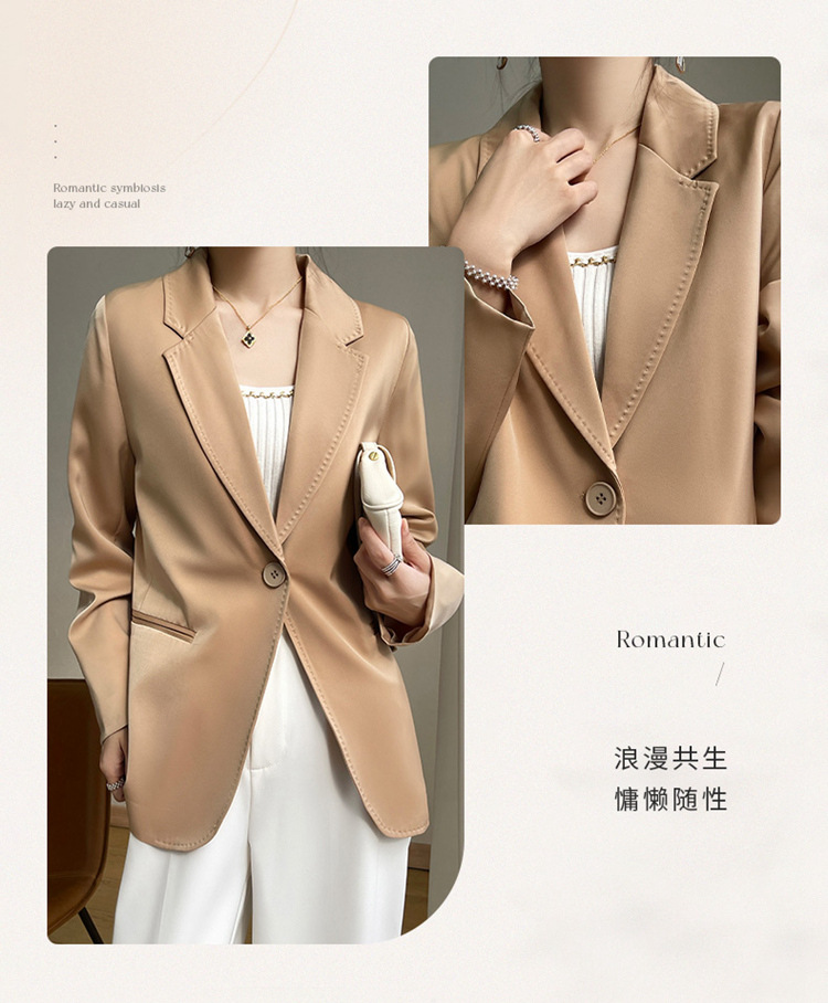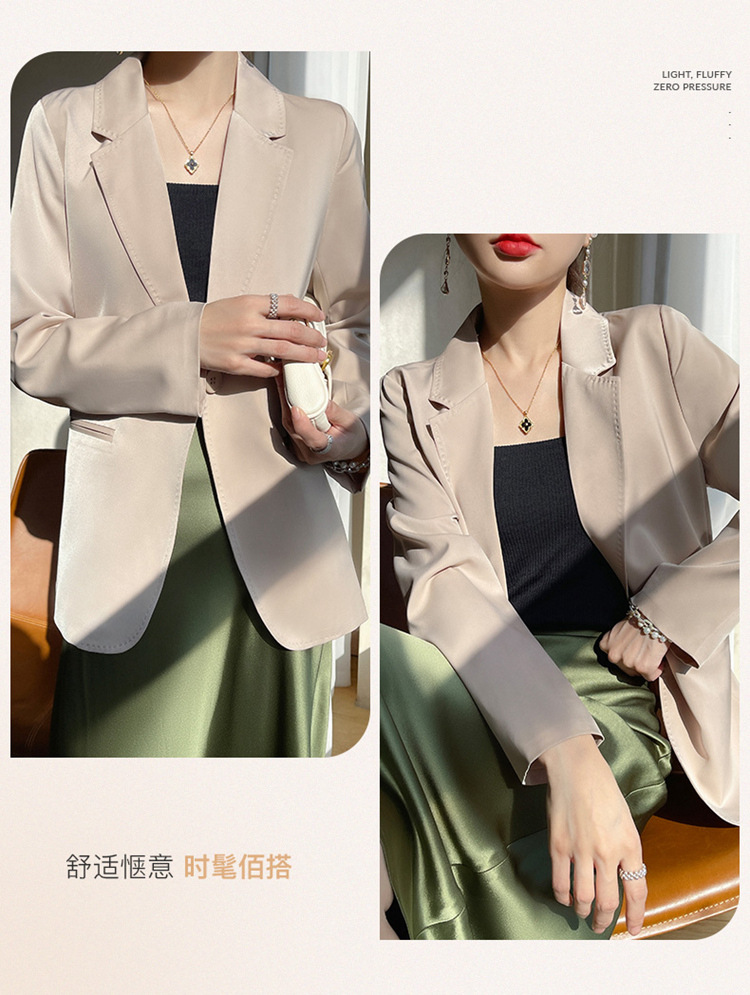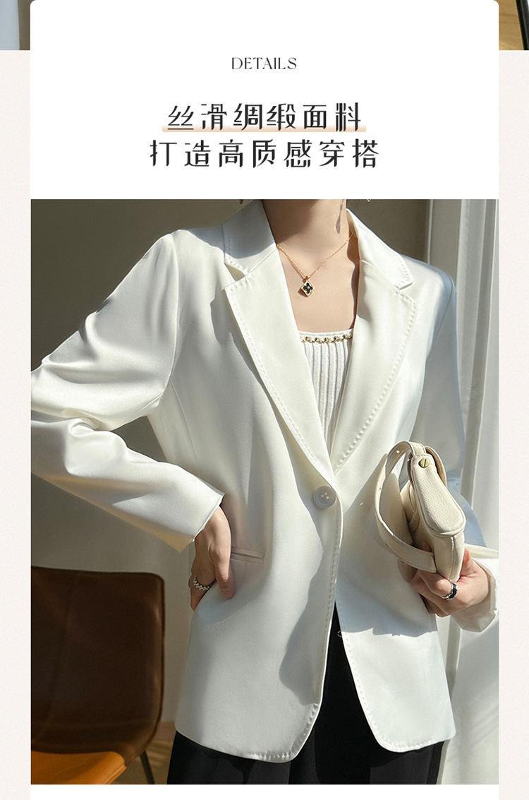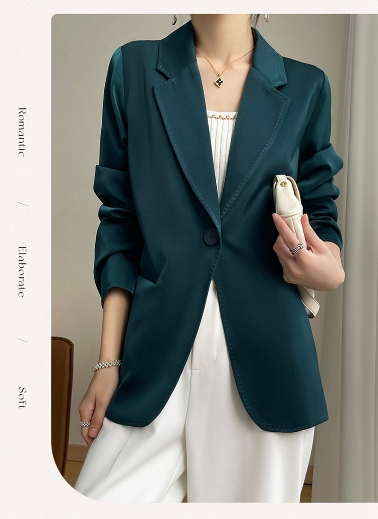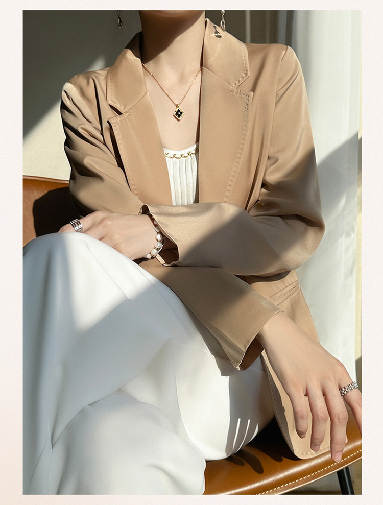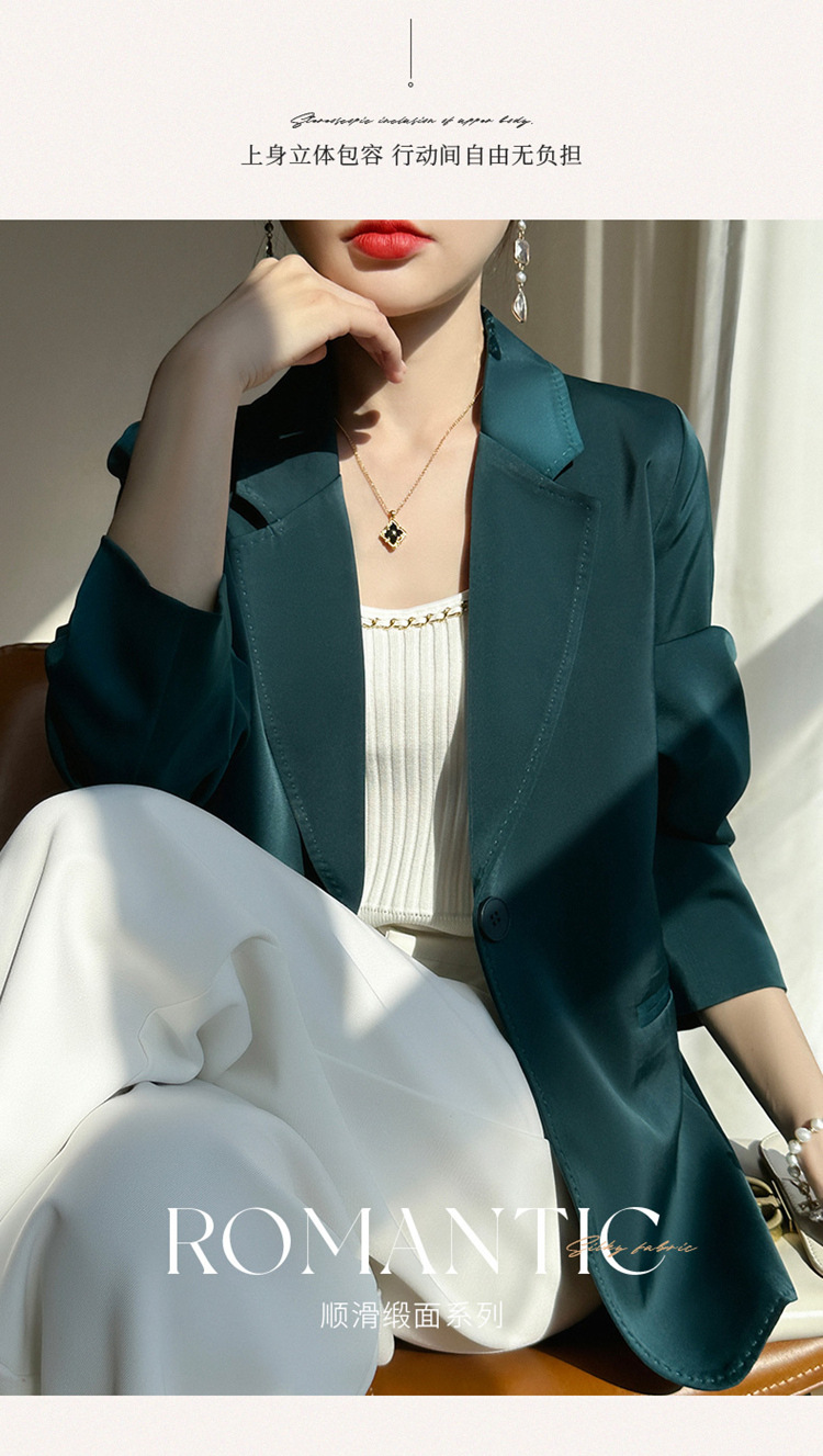 酢酸サテンの小さいスーツのコートの女性2025年春秋の新型の気質はやせているシルクのカジュアルなスーツの上着を現します。
