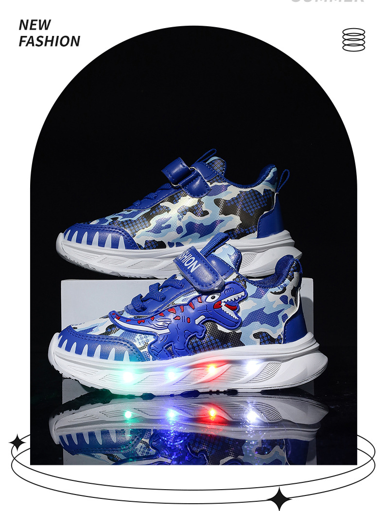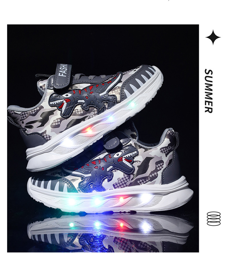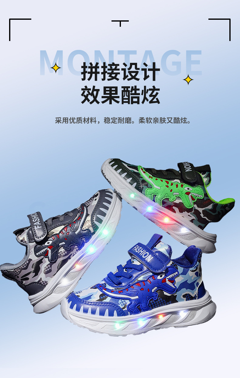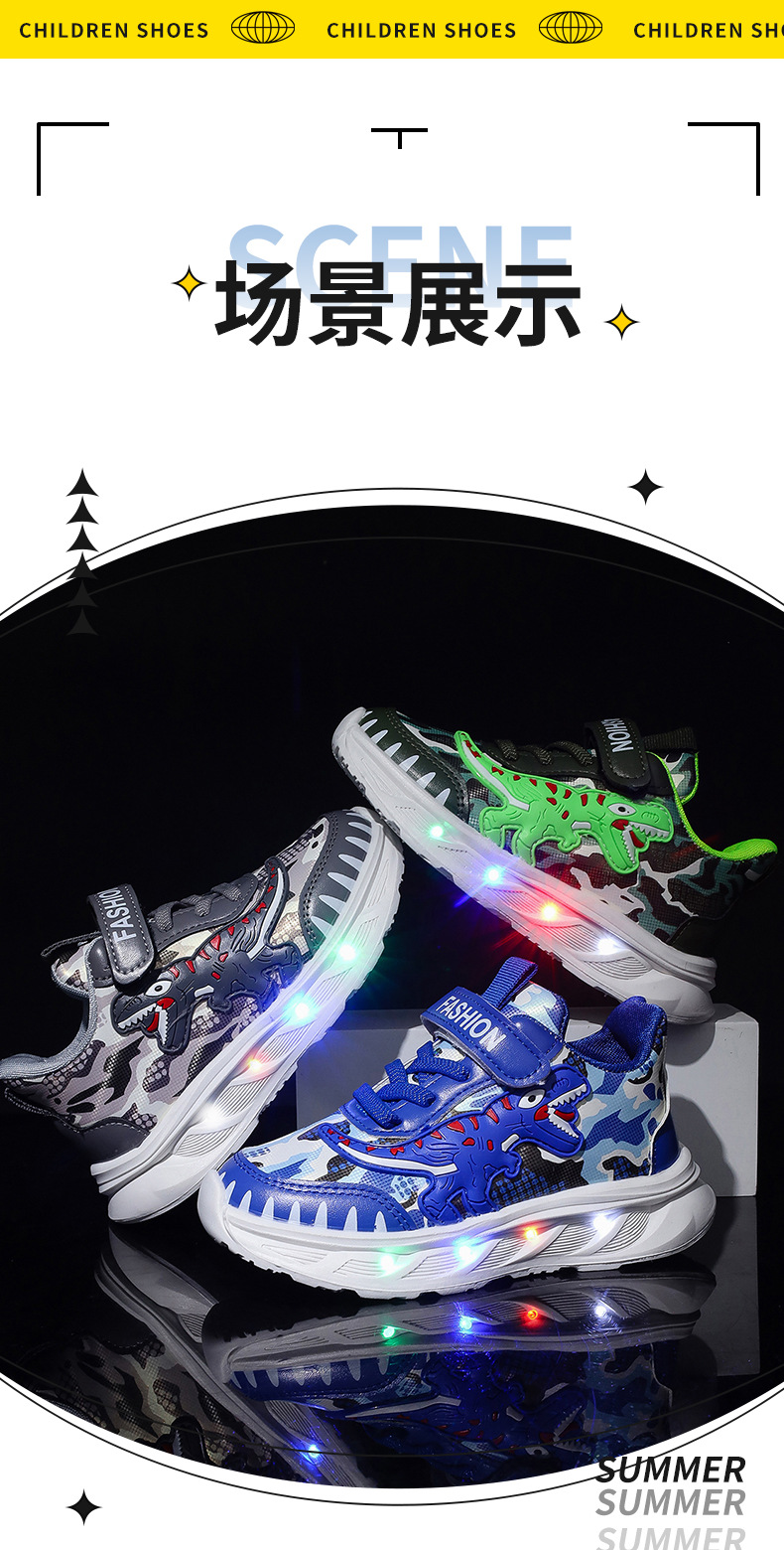 春秋新型アニメ子供運動靴恐竜LED発光子供靴中小男の子カジュアル点灯ランニングシューズ
