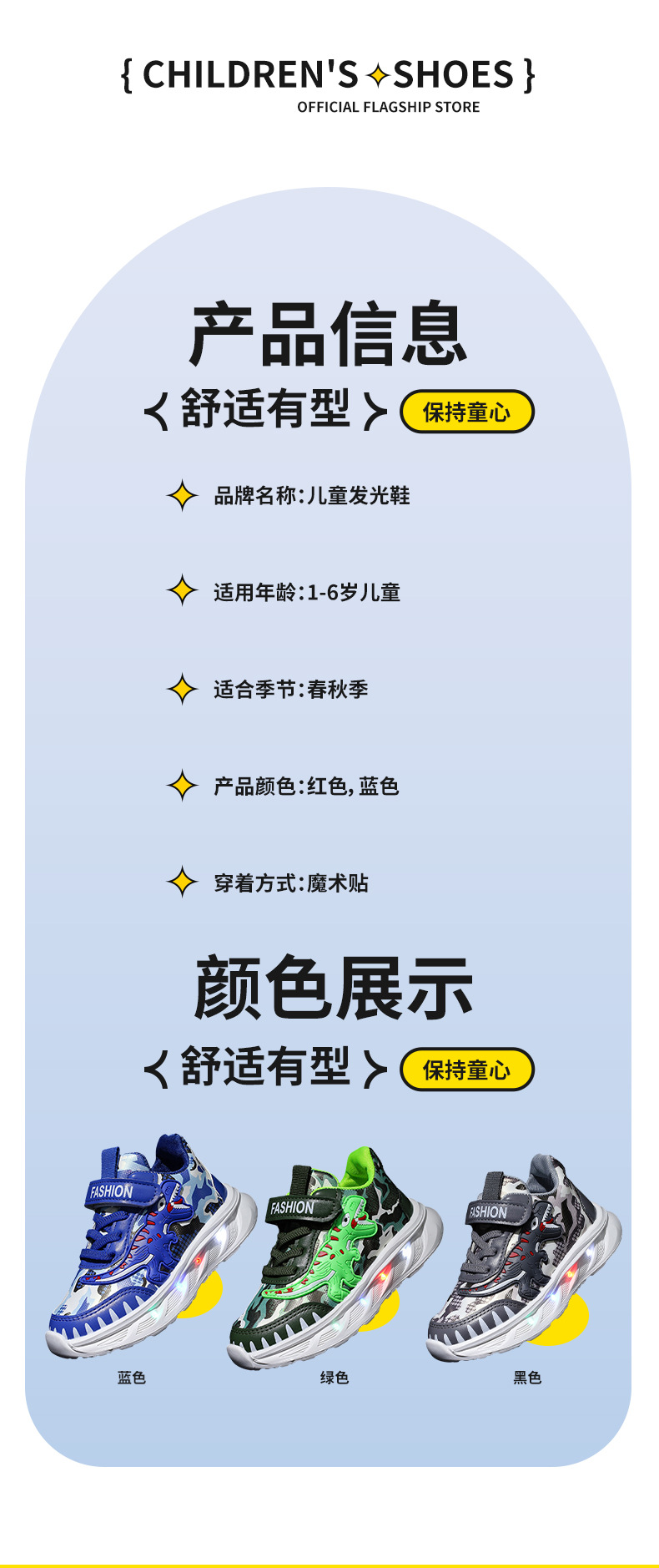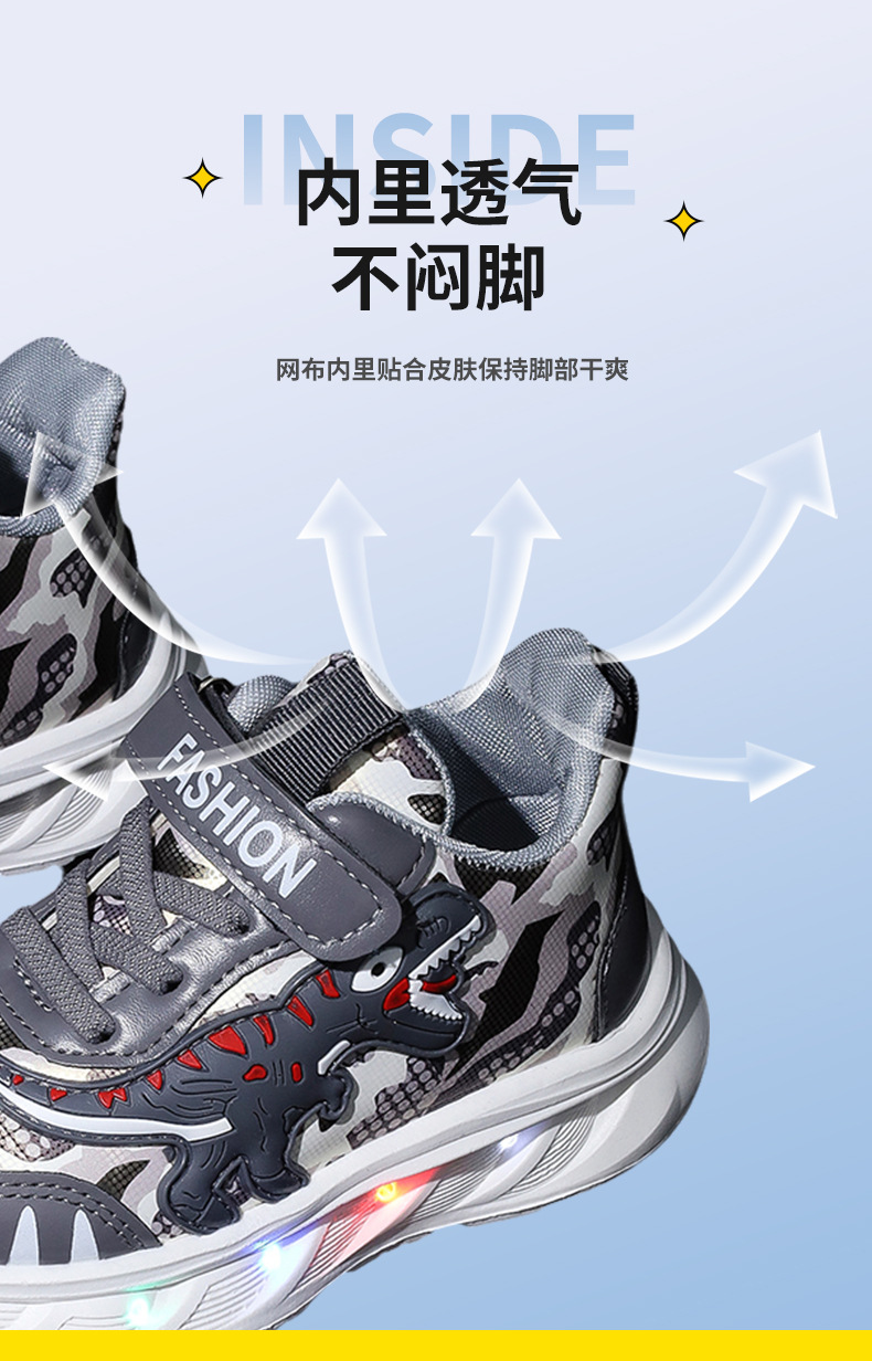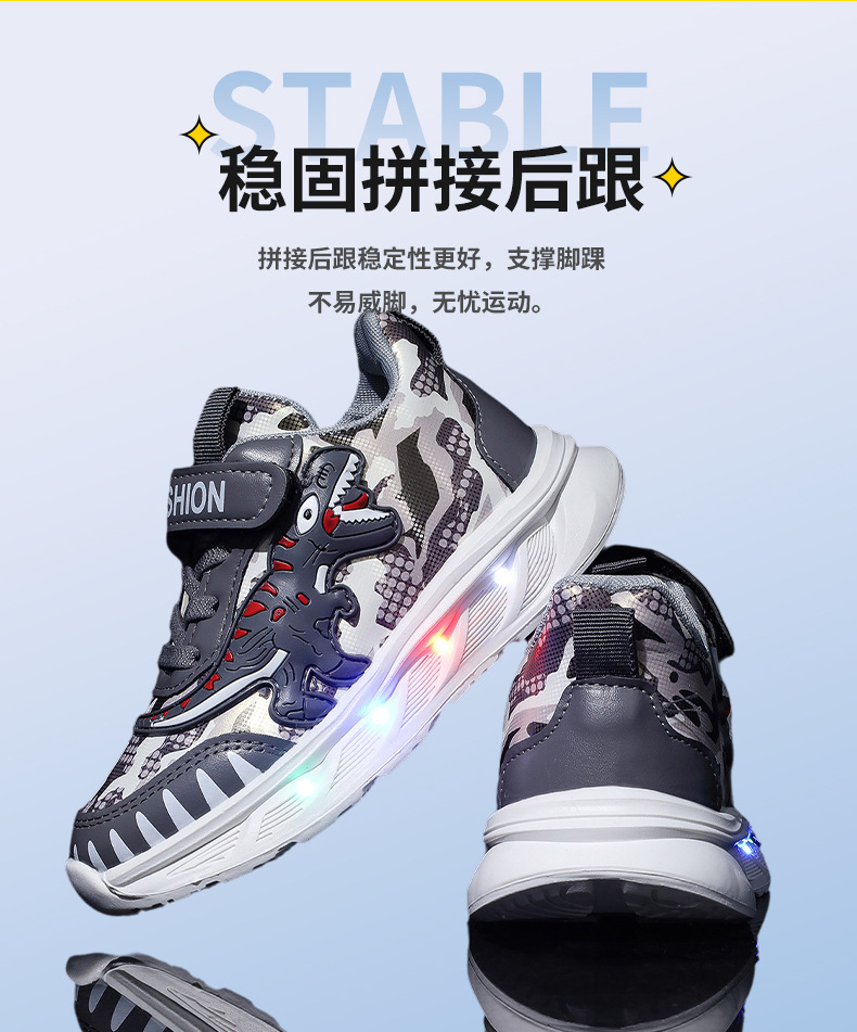 春秋新型アニメ子供運動靴恐竜LED発光子供靴中小男の子カジュアル点灯ランニングシューズ