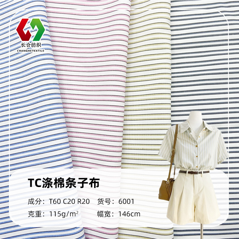 115克涤棉粘色织条纹衬衫面料 抗皱透气连衣裙衬衫衬衣条子梭织布