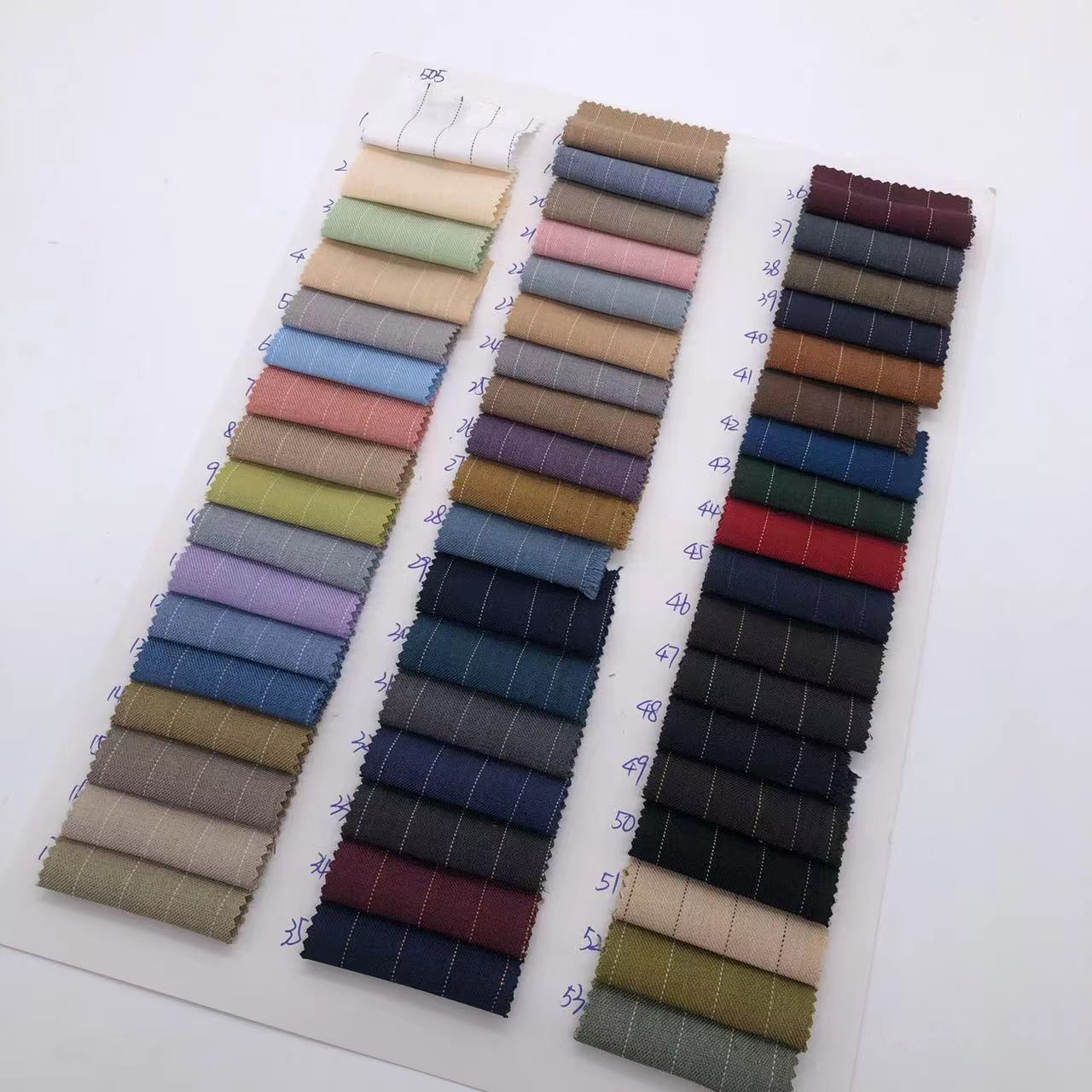 新商品の現物は男女のストライプのズボンのワンピースのスーツのコートの布地を売ります。