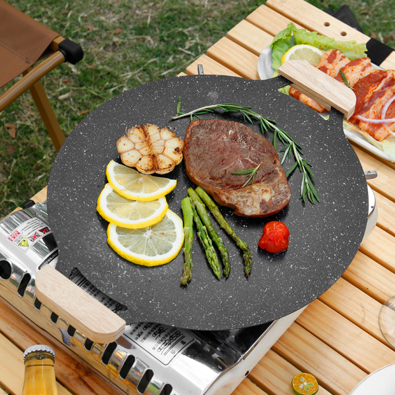 アウトドアキャンプグリルプレート韓国バーベキュープレートカセットストーブバーベキュープレート麦飯石ノンスティックフライパン鉄板プレート電磁調理器