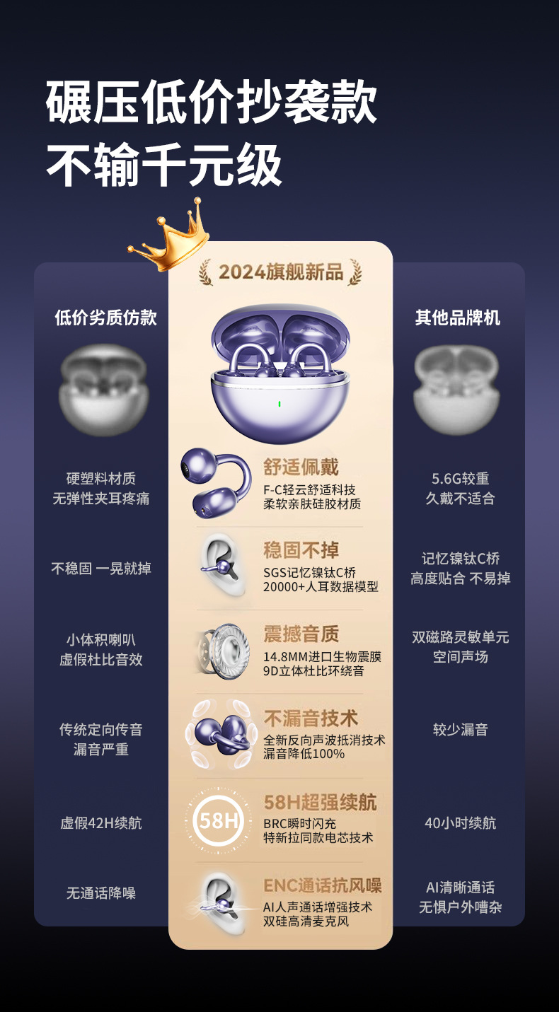 Clip04超长续航耳机无线蓝牙跨境高音质不入耳高品质耳夹式G126