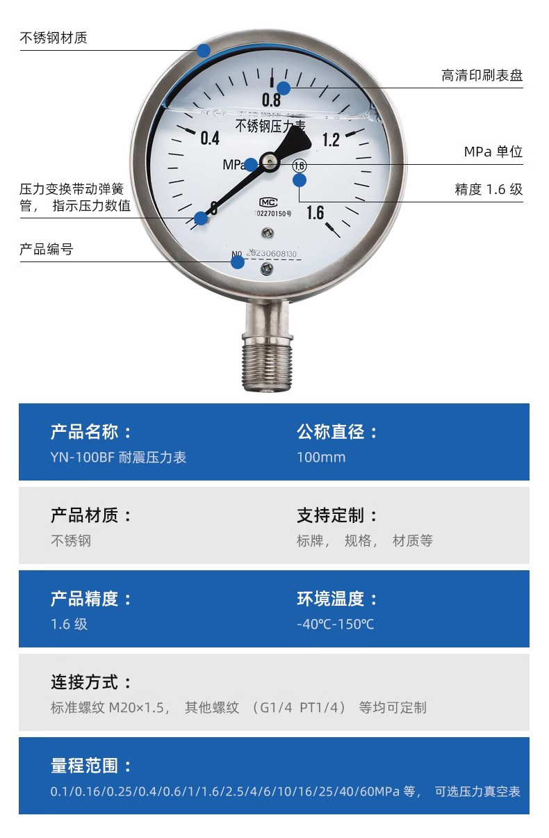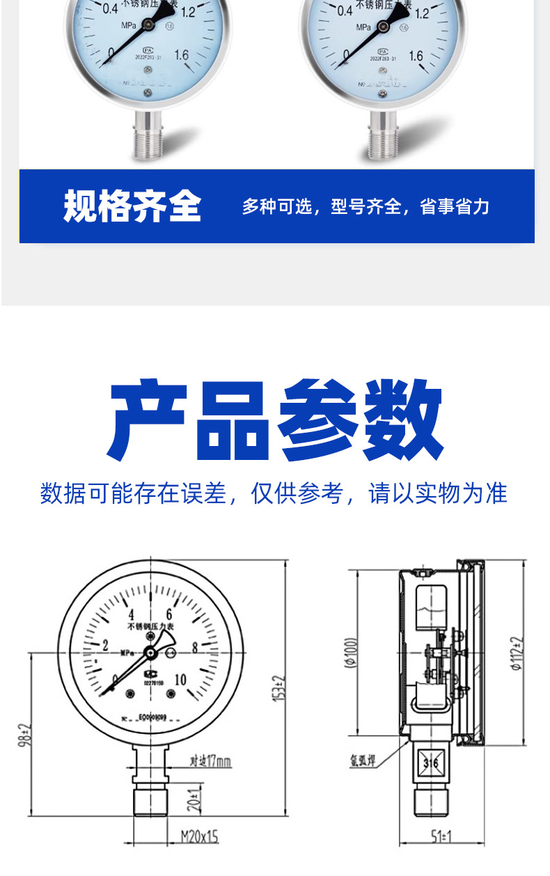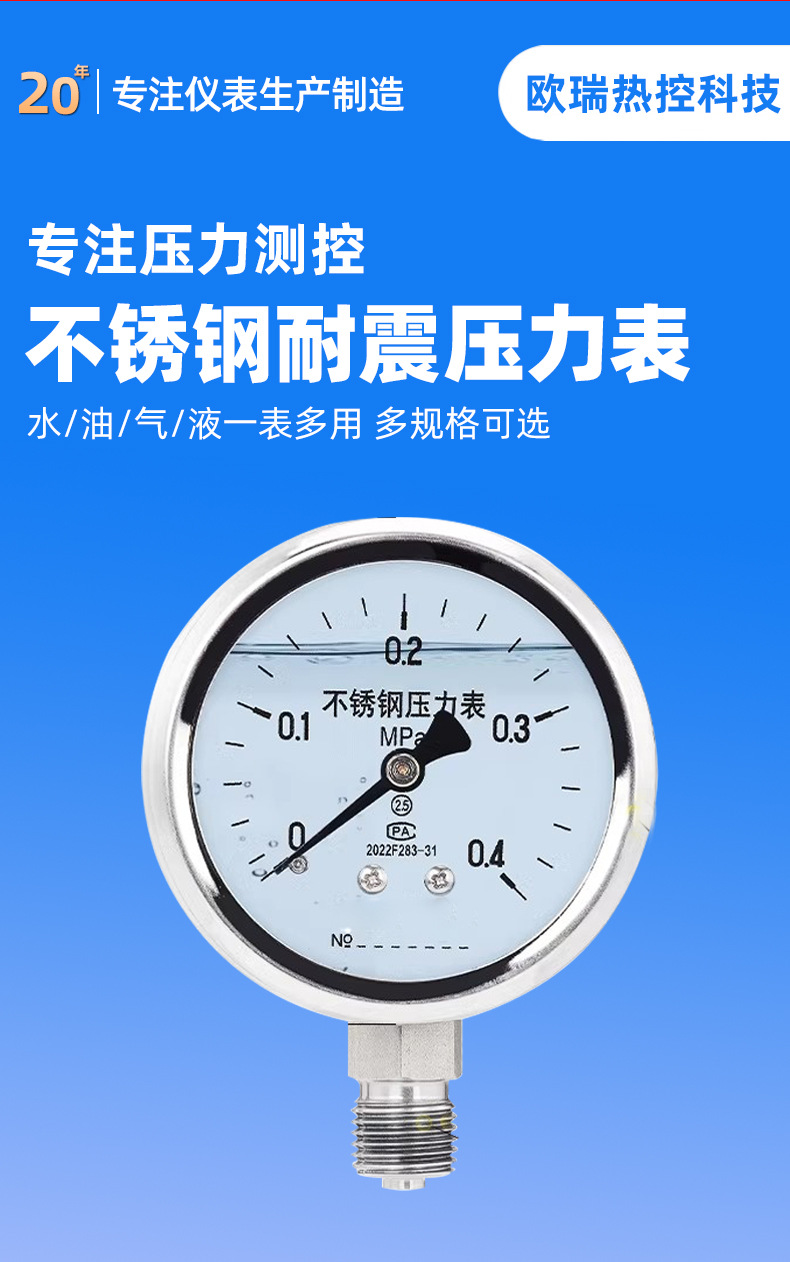 类型 不锈钢压力表