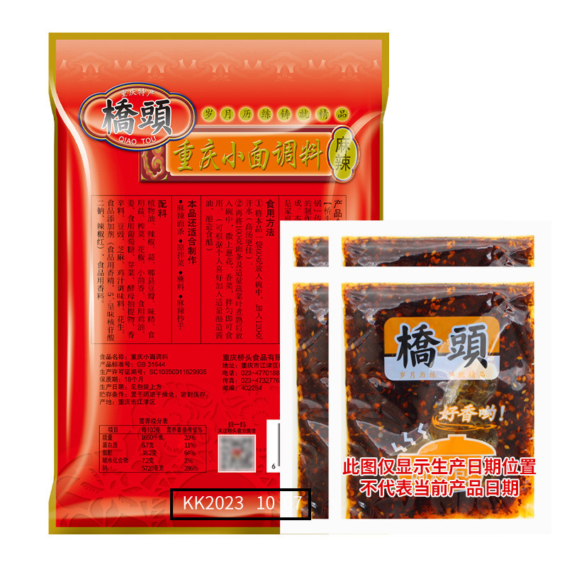 橋の端の重慶の小さい麺の調味料の240gの本場の四川の麻辣練の麺の味噌のスープの調味料の小袋は家庭用を募集します。