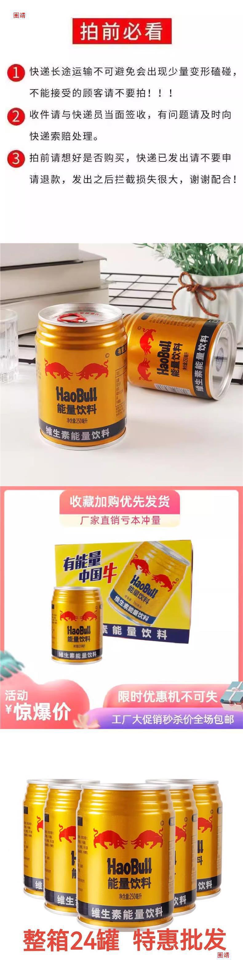 ネットレッドタウリンエネルギー飲料24缶250ml双牛ビタミンスポーツ飲料強化提神箱