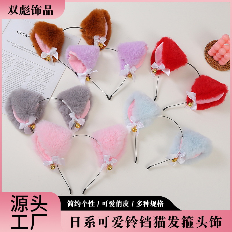 日本のかわいい鐘猫ヘアフープキツネ獣耳ぬいぐるみ帽子cosインターネットセレブリーリボン甘いヘアフープ卸売