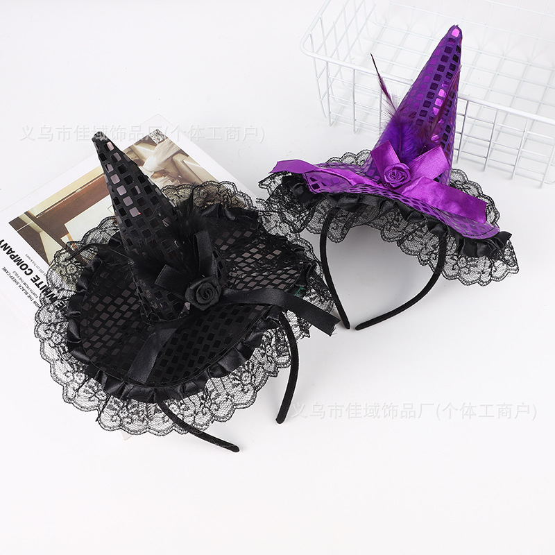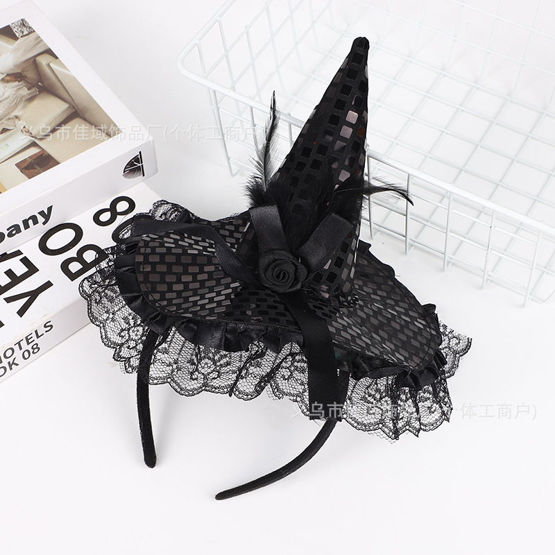 クロスボーダーハロウィーン帽子フープレースレース魔女帽子フープデコレーション用品子供ステージ髪飾りスポット