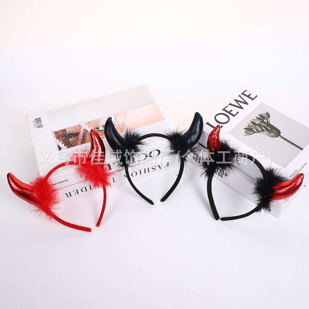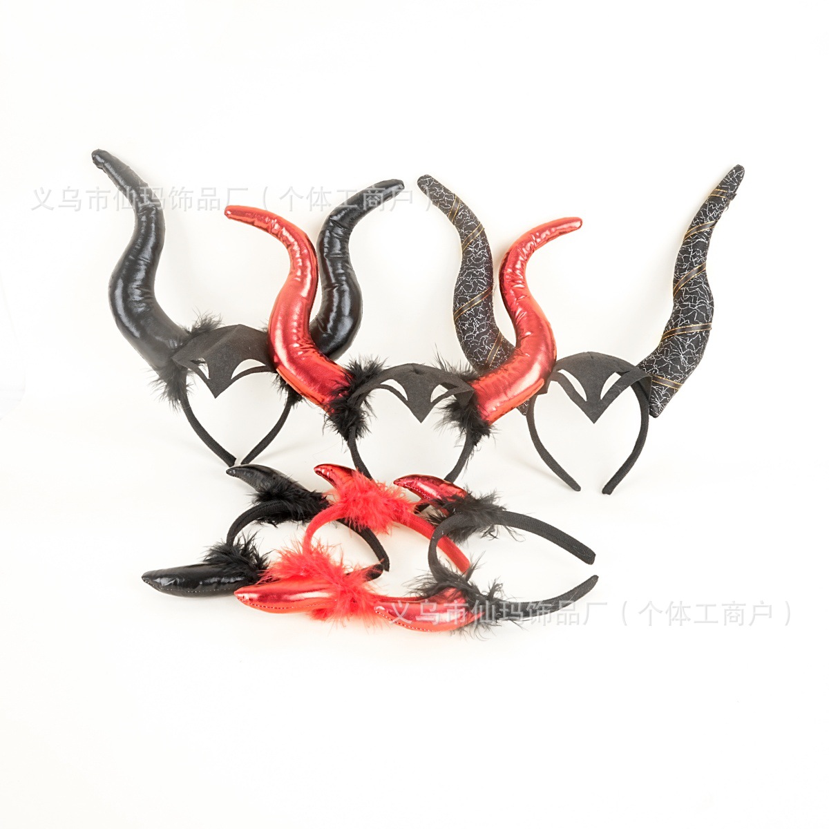 万圣节恶魔大号羽毛牛角发箍 鬼节舞会派对装扮表演牛角头饰现货