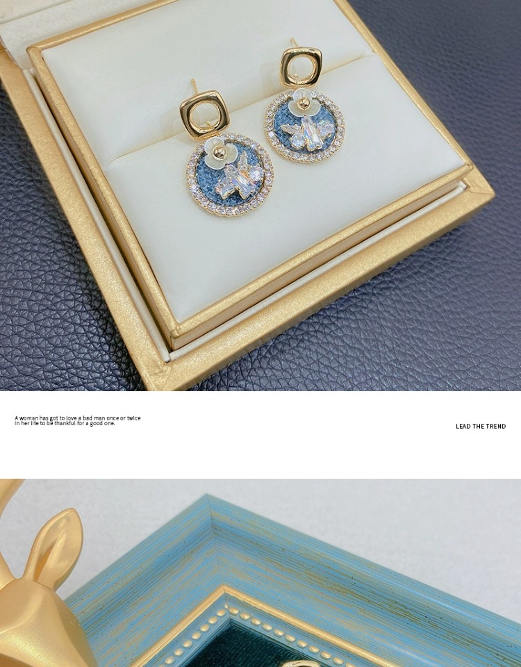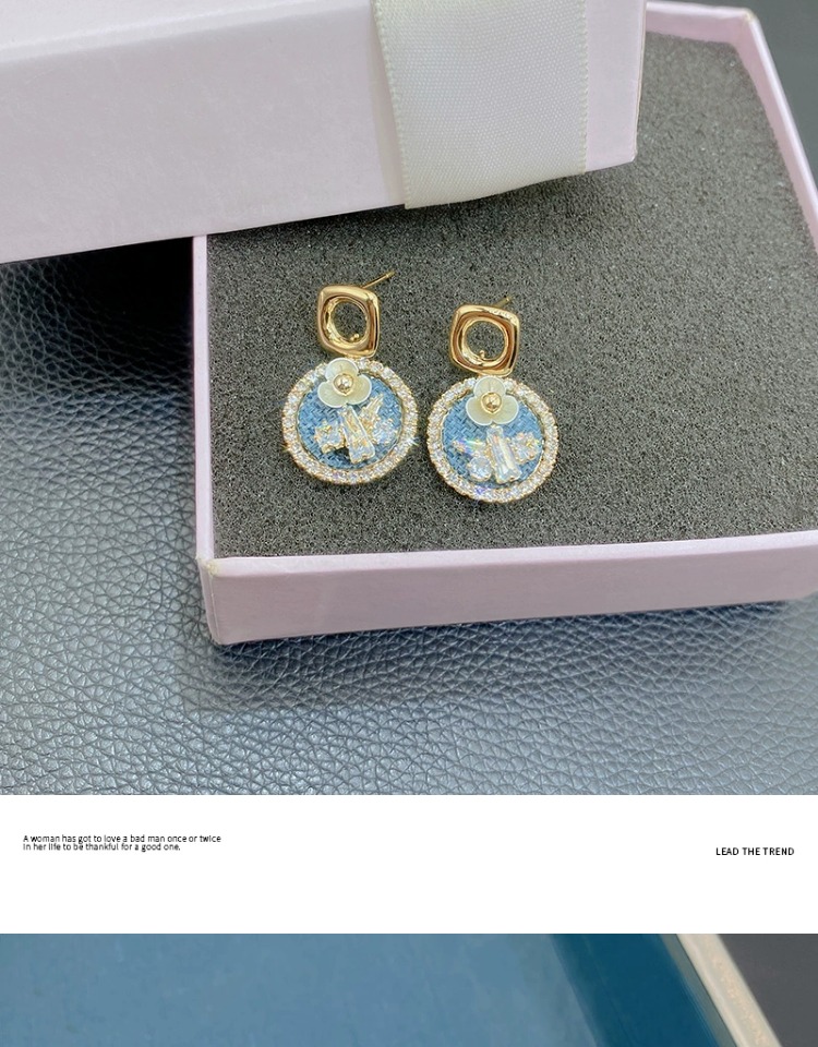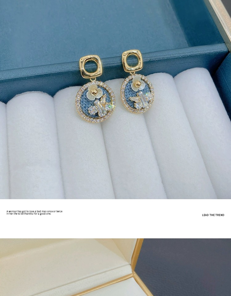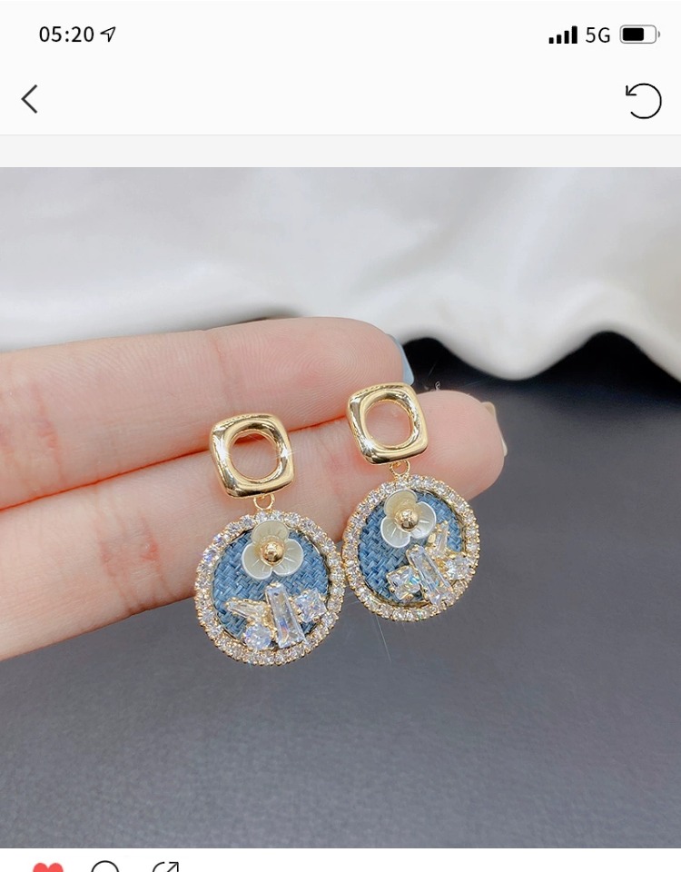 ファッションデザイン感猫眼石五弁花真珠イヤリング女性小衆顕気質ピアス韓国東大門ピアス