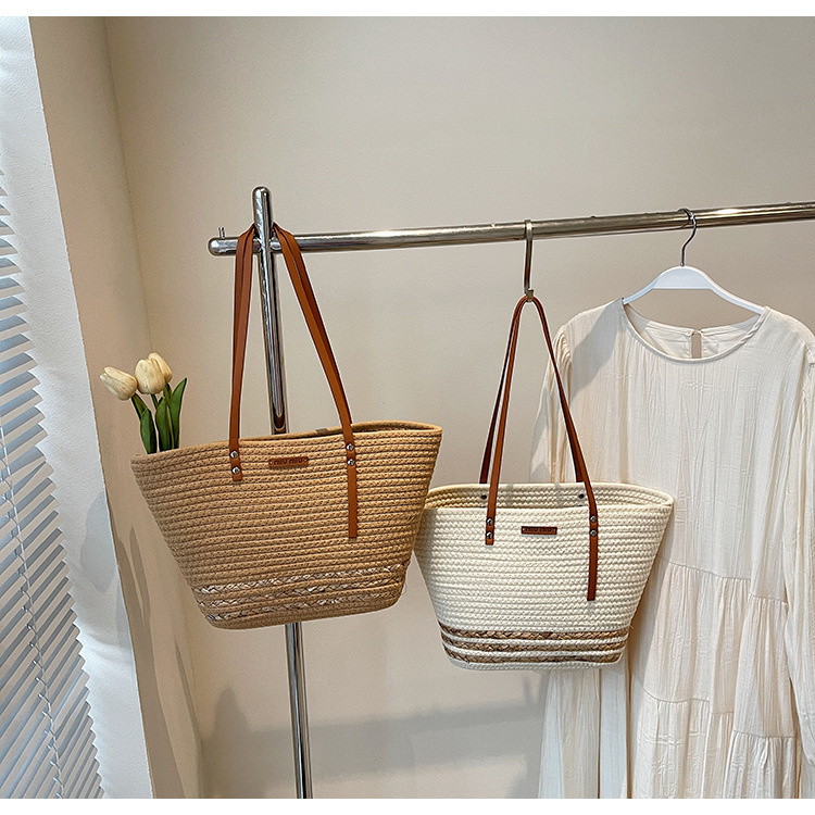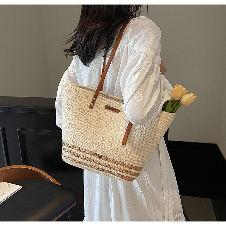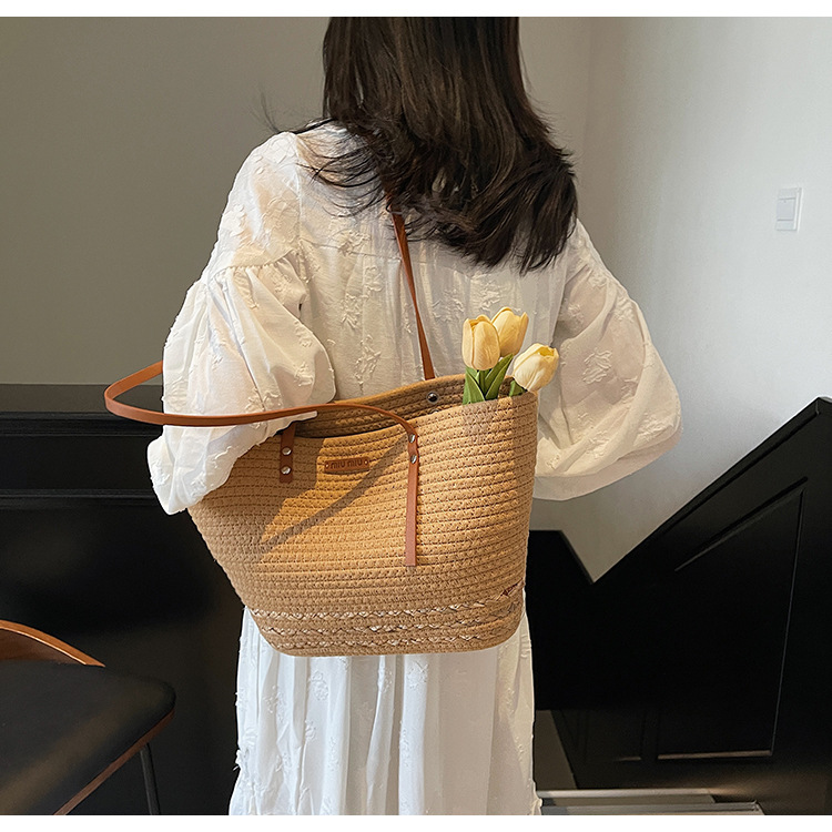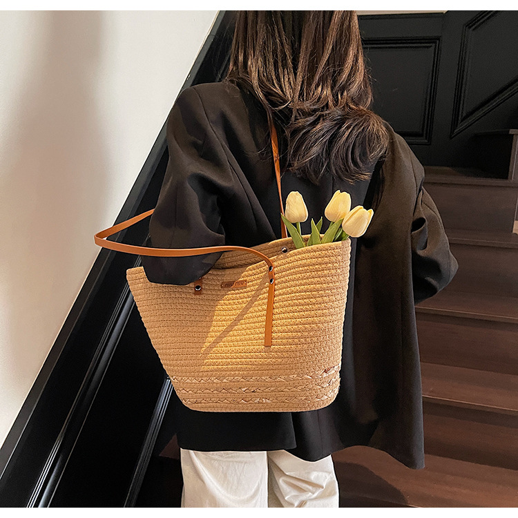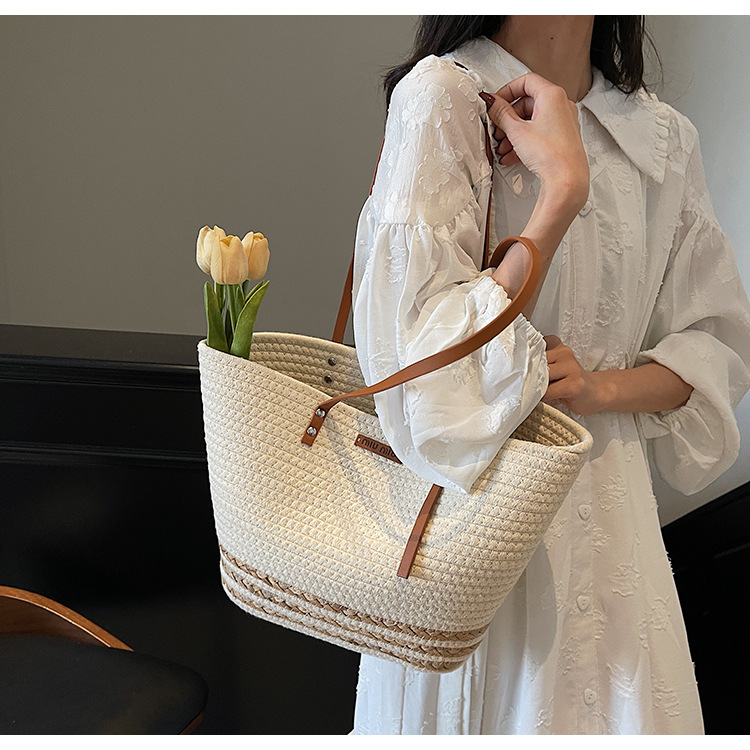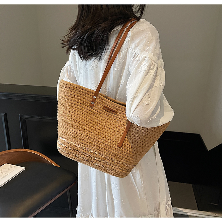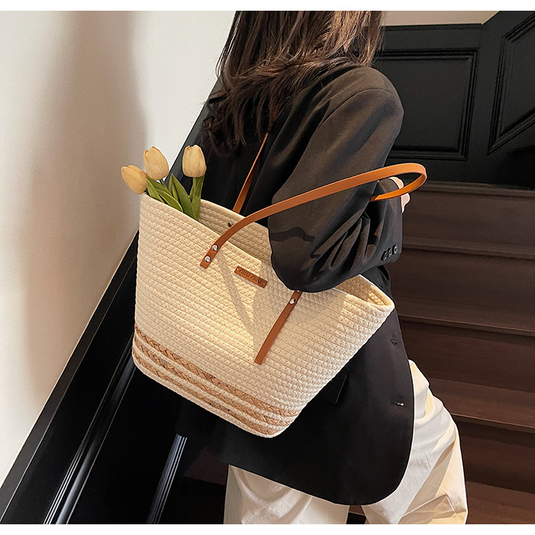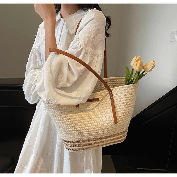 国境を越えたビーチトートバッグinsリゾート風草編みバッグ女性シングル肩新大容量手提げ編みバッグ