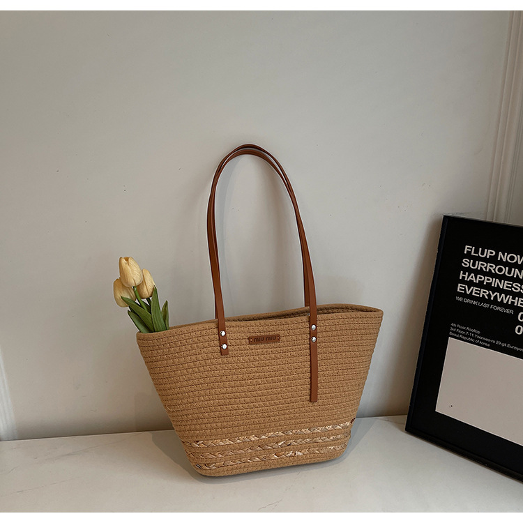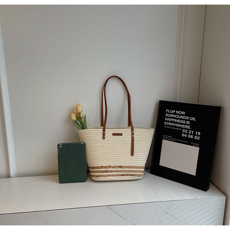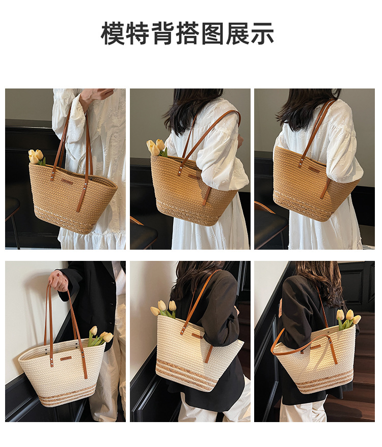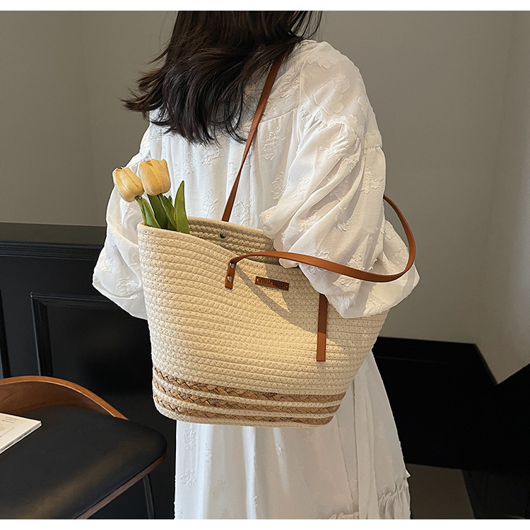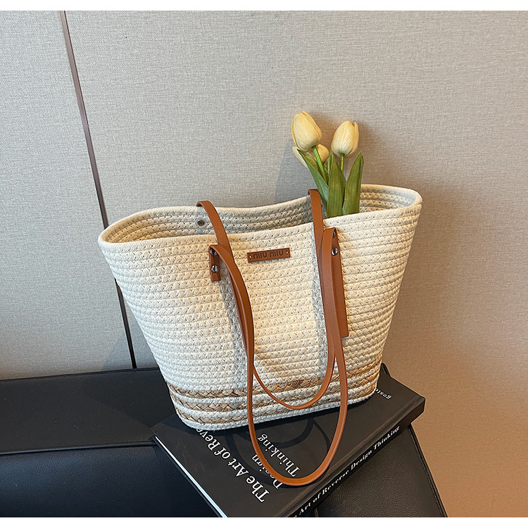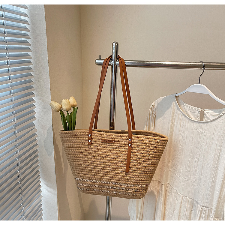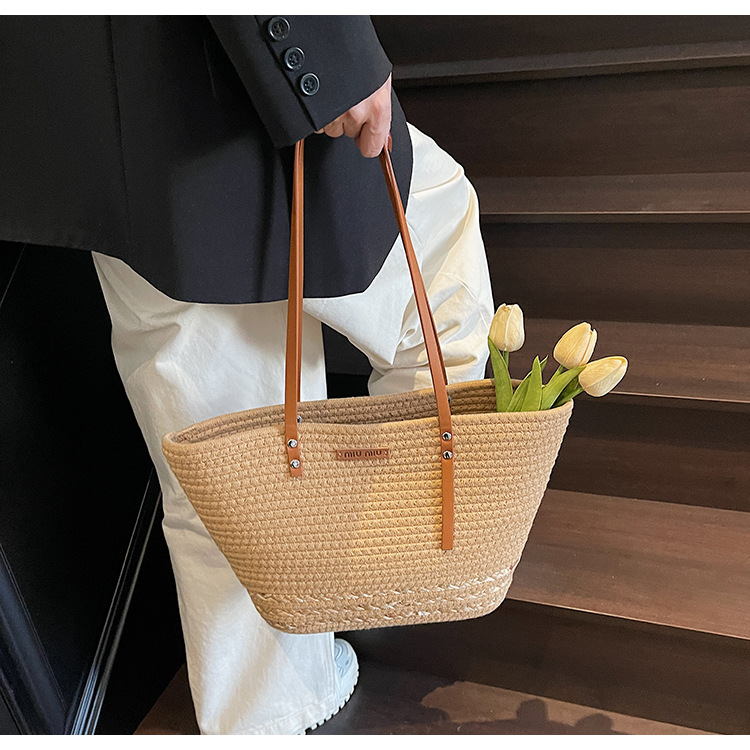 国境を越えたビーチトートバッグinsリゾート風草編みバッグ女性シングル肩新大容量手提げ編みバッグ