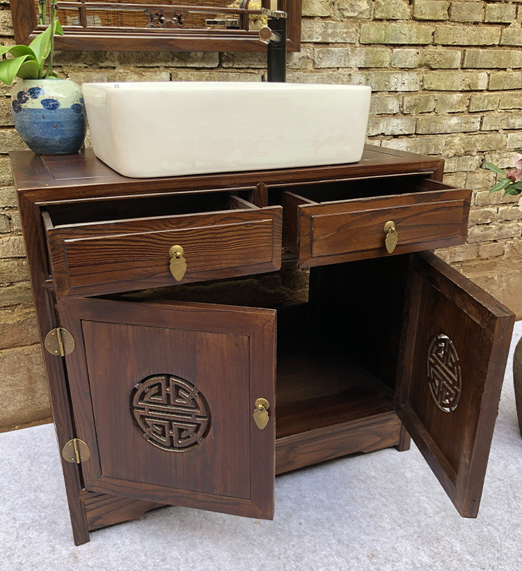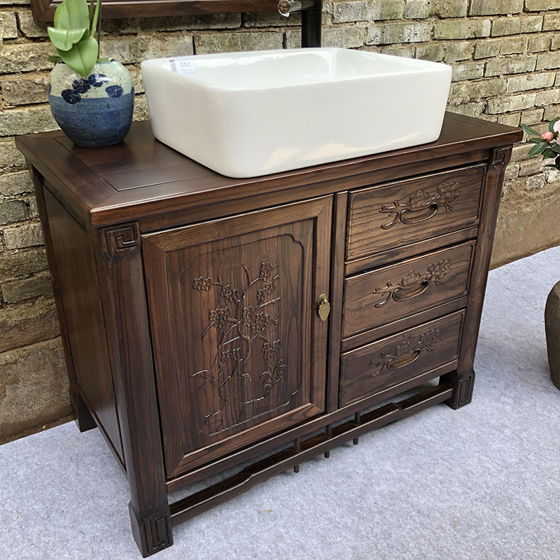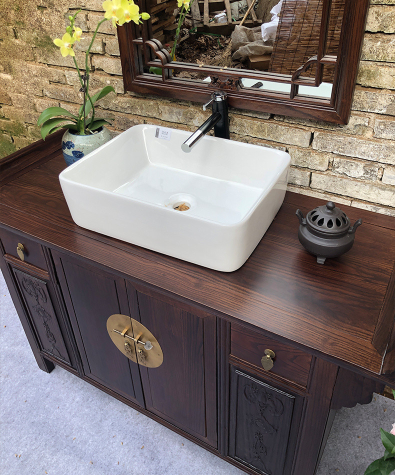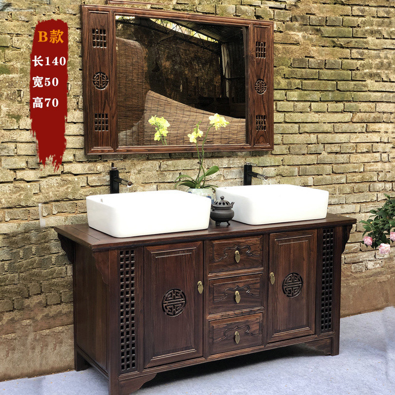 9sa中国式模造古全実木浴室キャビネット洗面台上盆トイレ戸棚収納戸棚会民宿