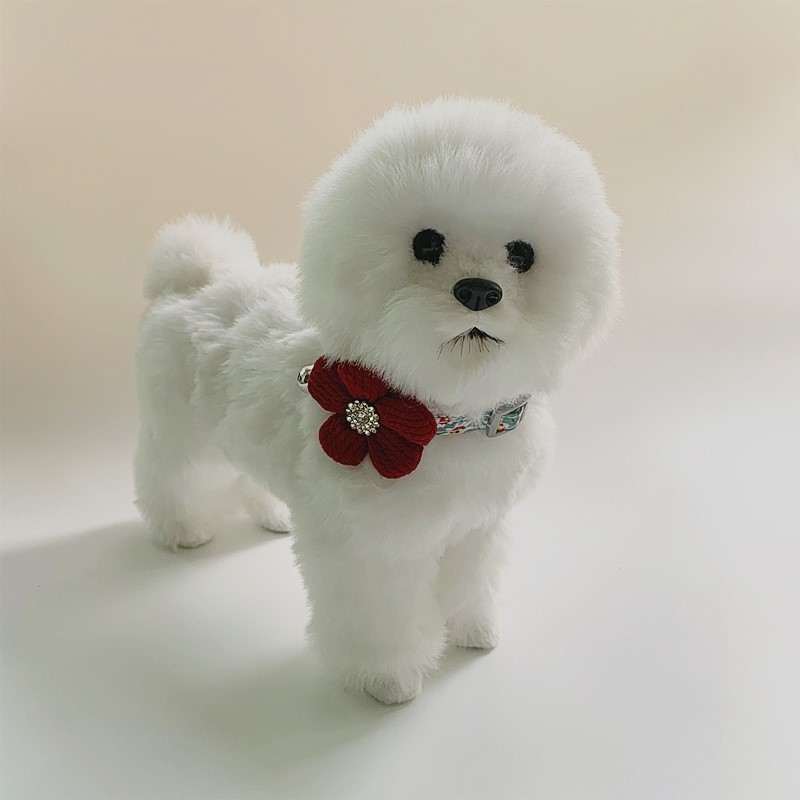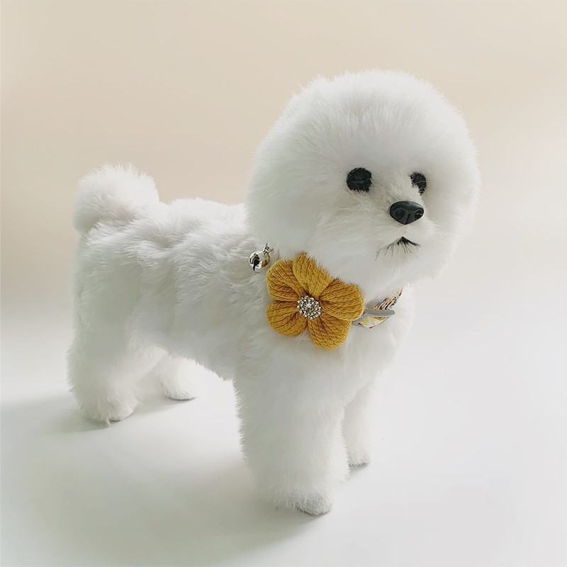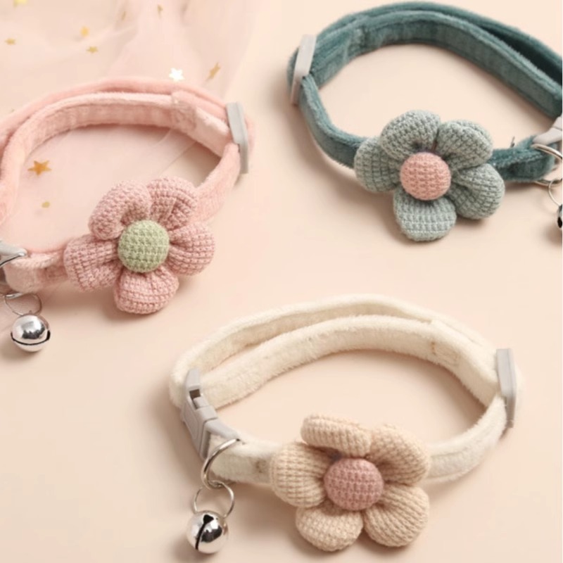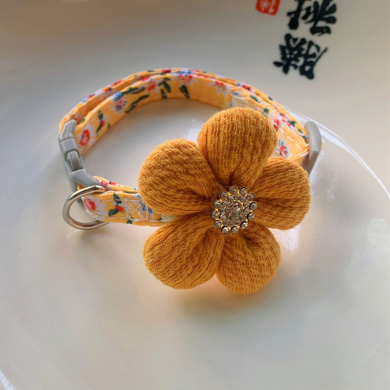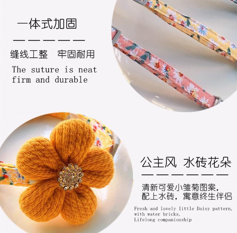 花卉图案可爱宠物配件,可拆卸铃花吊饰,柔软可调节涤纶领巾