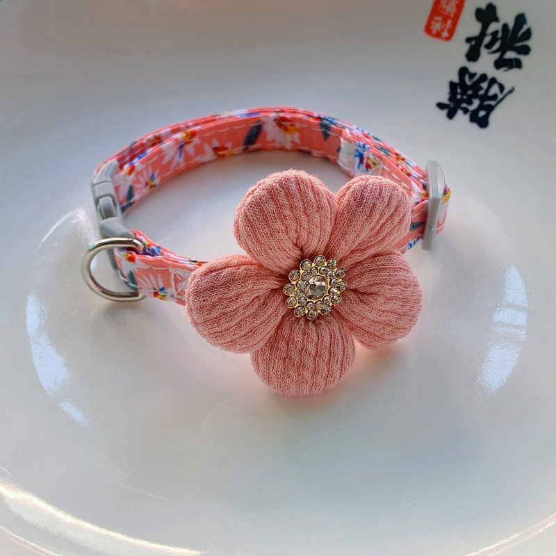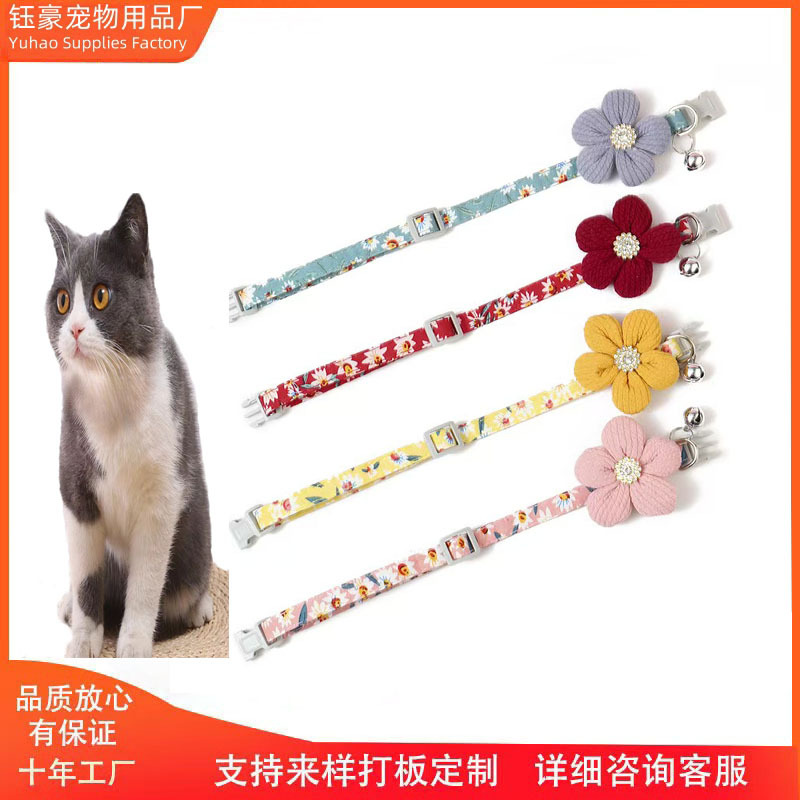 ダイヤモンド付きペット用小花首輪、かわいい猫用ベル首輪、子犬用首輪アクセサリーを含む越境新製品