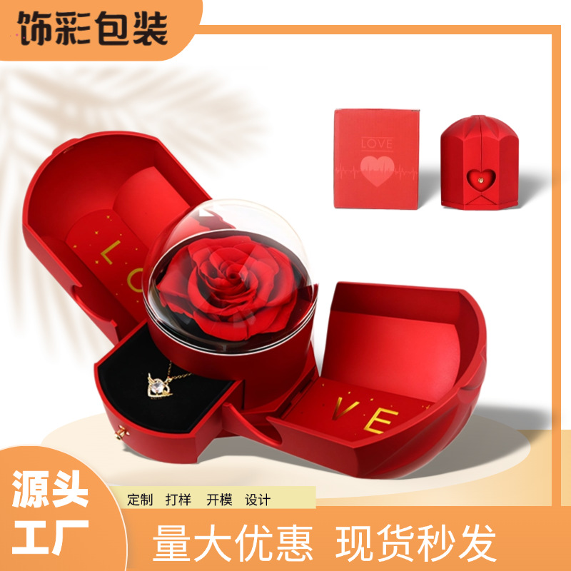 創意双開永生花バラギフトボックス引き出し式バラアクセサリー箱ネックレス指輪包装箱現物