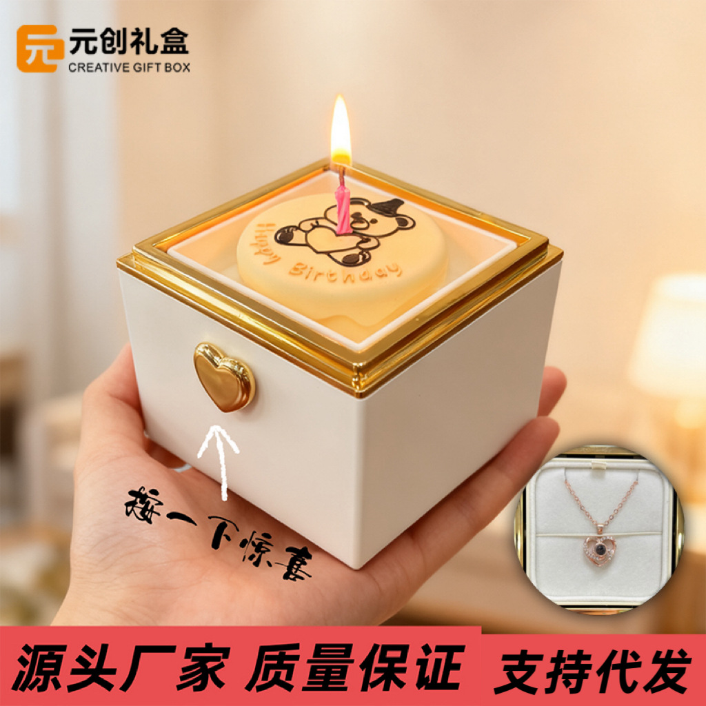 クリエイティブ新驚き箱反転ケーキキャンドルジュエリー包装箱指輪ネックレス自動回転ギフトボックス