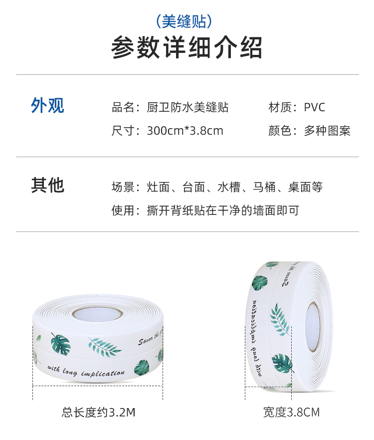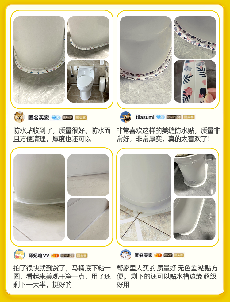 美縫は防水を貼って防湿台所のトイレの便器の台の縁にトイレの縫い目を貼って醜いシールを隠します。