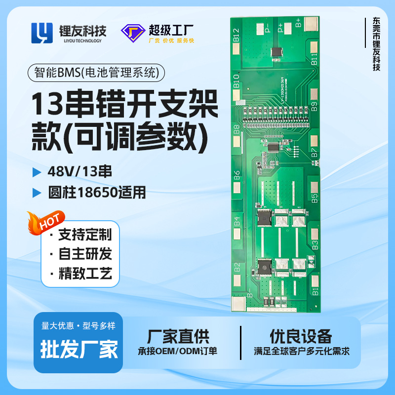 13串保护板带均衡错开支架款 13SDH21364适配锂电池 参数可调