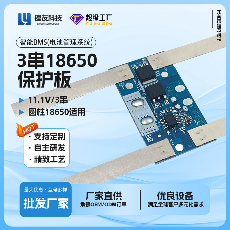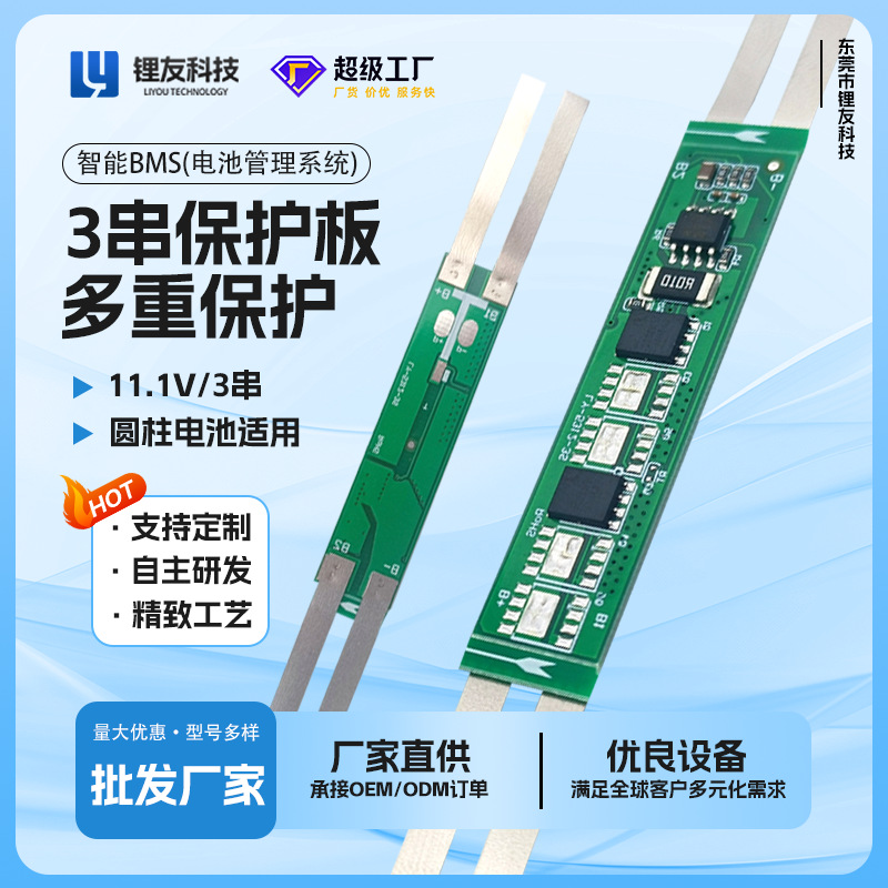 3連11.1v保護基板、4A/8A電流非常灯小型家電に適したLY3SDBDMリチウム電池