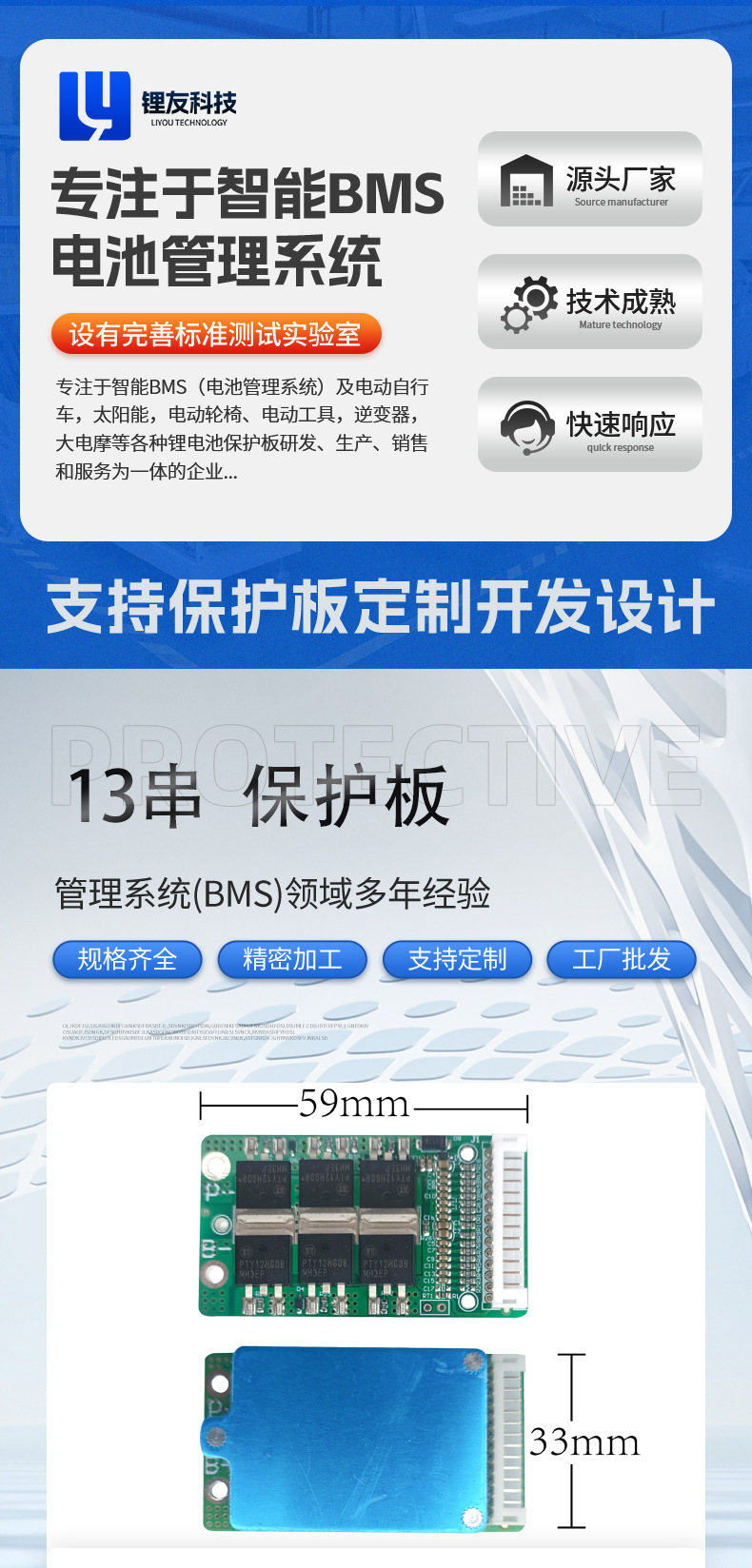 7-10ストリング保護板25.9V-37V保護板LY-CW6335